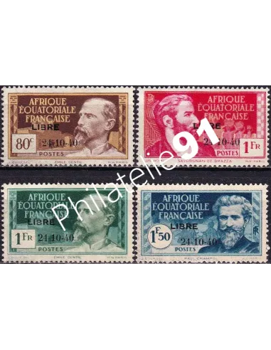 A.E.F. - n° 140A à 140B (*) - Arrivée du Général de Gaulle à Brazzaville - Timbres avec surcharge supplémentaire "24-10-40"