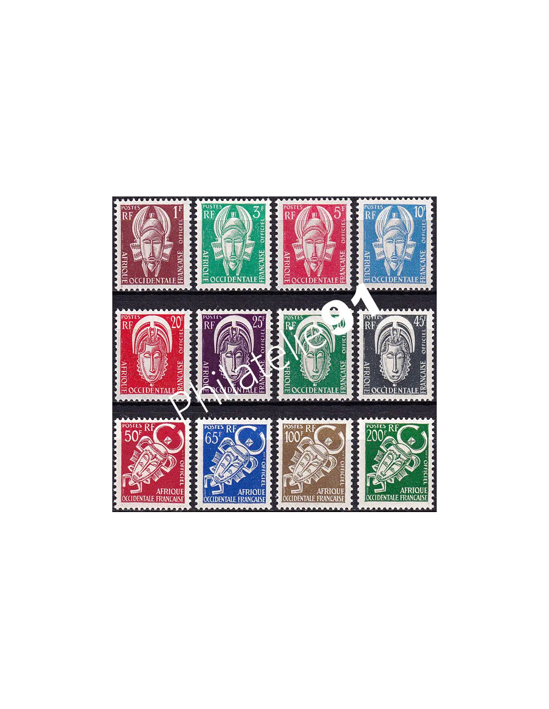 A.O.F. - Timbres de Service - n° 1 à 12 * - Masques africains