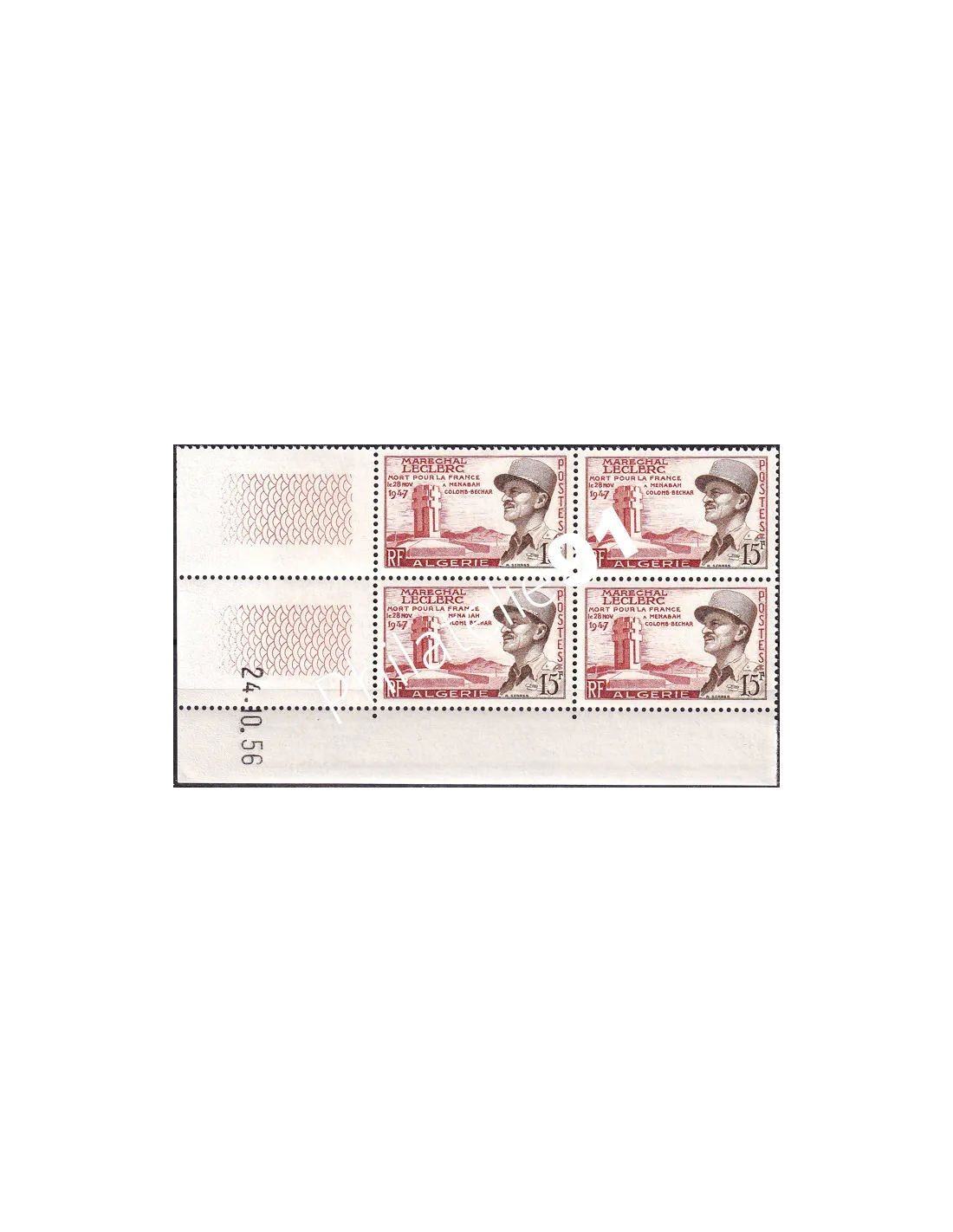 ALGERIE - n° 338 ** - Coin daté (1956) - Hommage au Maréchal Leclerc