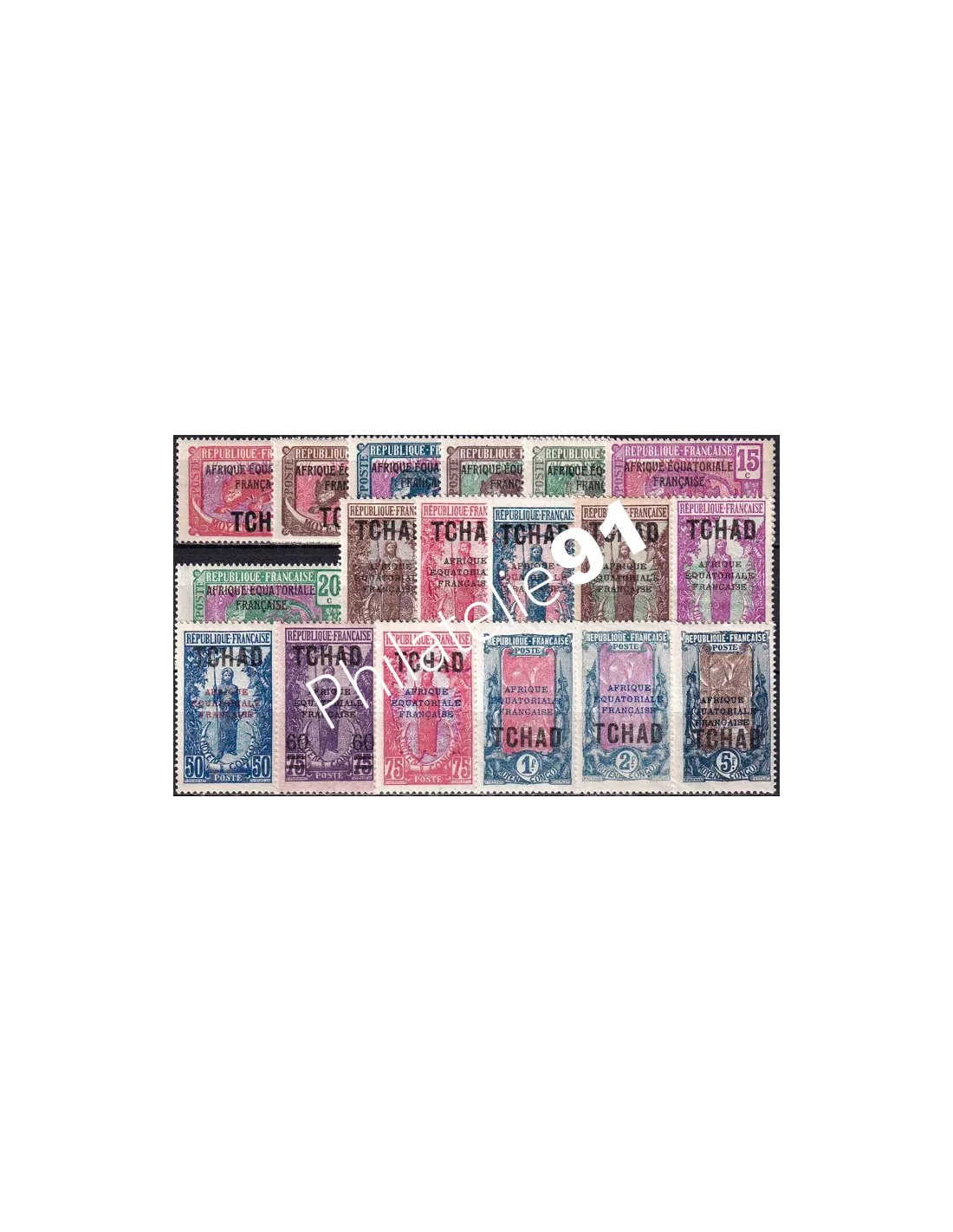 TCHAD - n° 19 à 36 * - Timbres de 1922 avec surcharge supplémentaire "AFRIQUE ÉQUATORIALE FRANÇAISE"