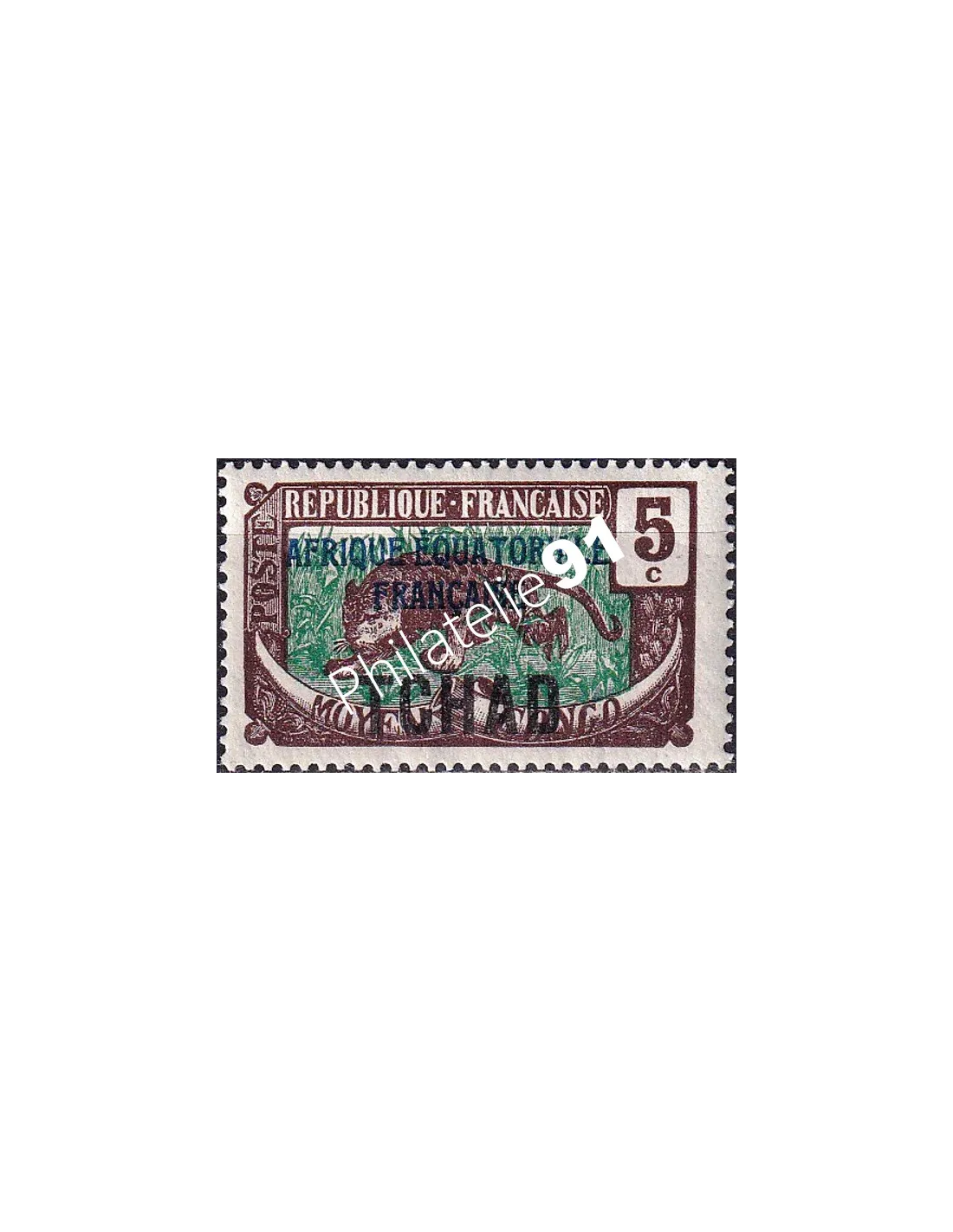 TCHAD - n° 22b * - Timbre de 1922 avec surcharge supplémentaire "AFRIQUE ÉQUATORIALE FRANÇAISE" - Panthère
