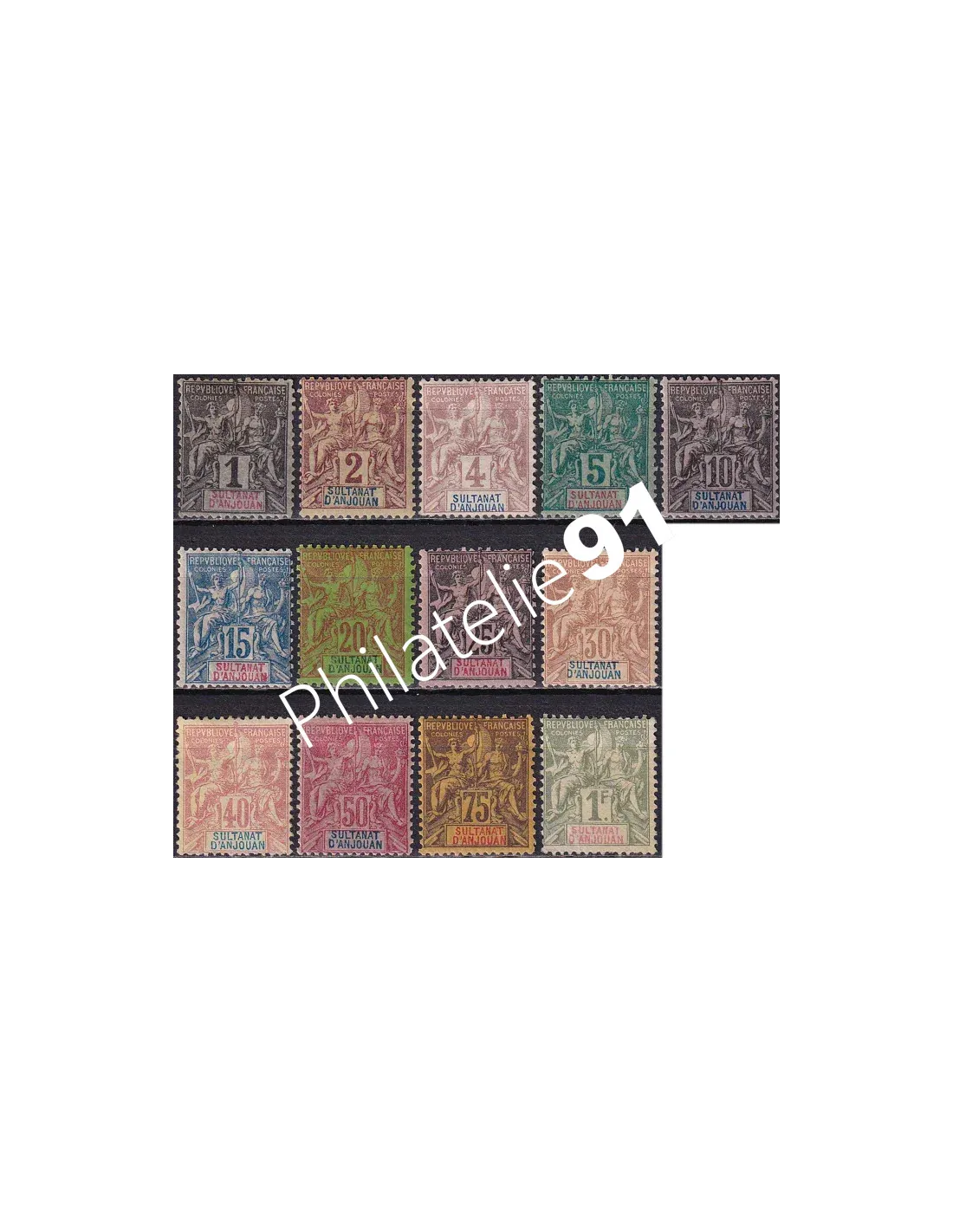 Série complète neuve avec charnière * d'Anjouan, sous protectorat français.