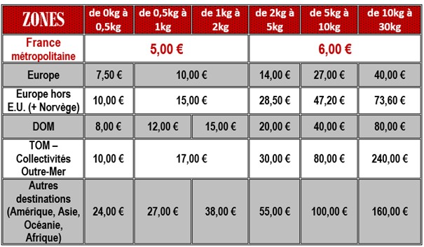 Tous nos envois sont faits avec assurance en cas de détérioration, spoliation ou de perte par La Poste.