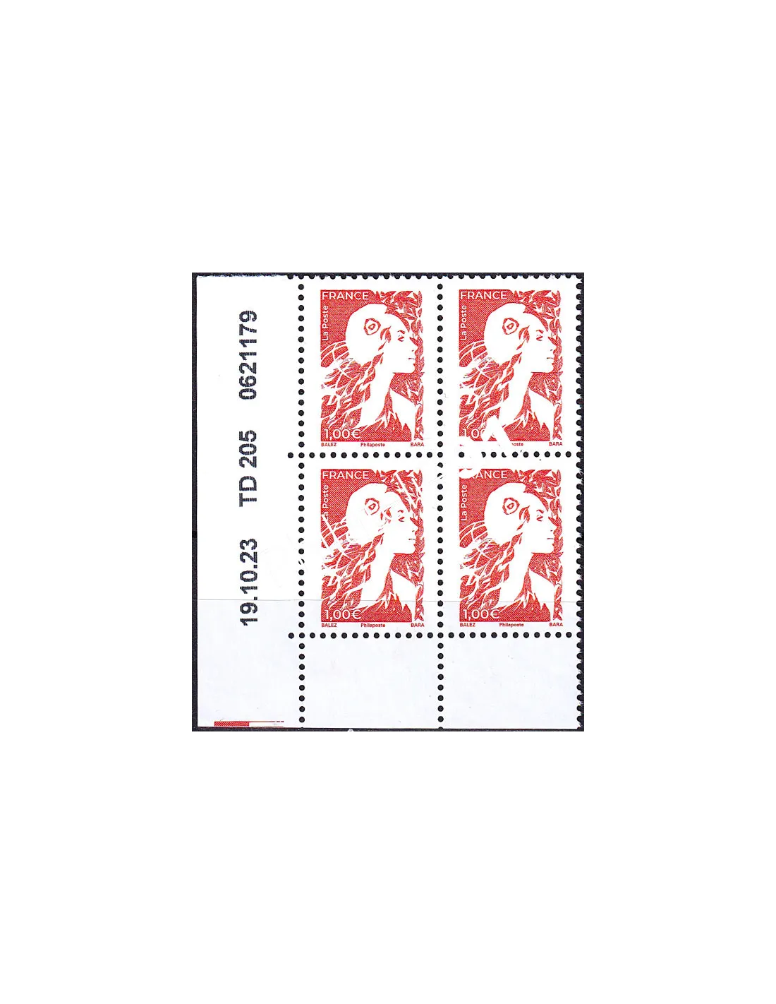 Bloc de 4 timbres avec coin daté de 2023.