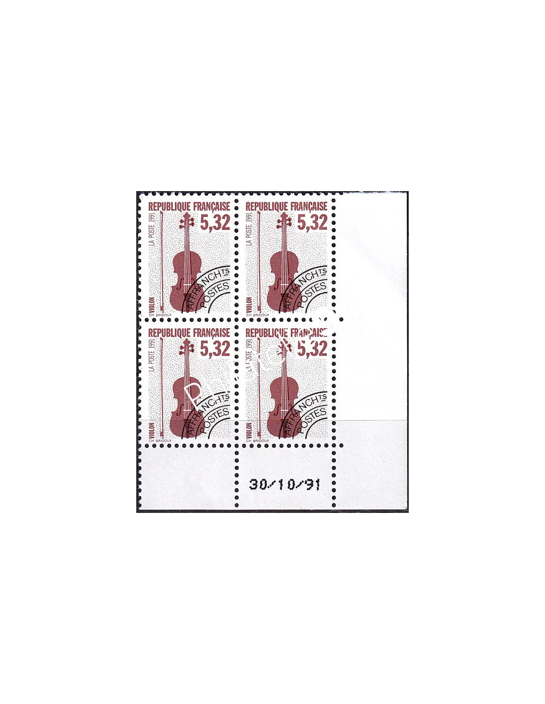 Timbre Préoblitéré n° 223 ** - Coin daté (1991) - Instruments de musique (IV) - Violon