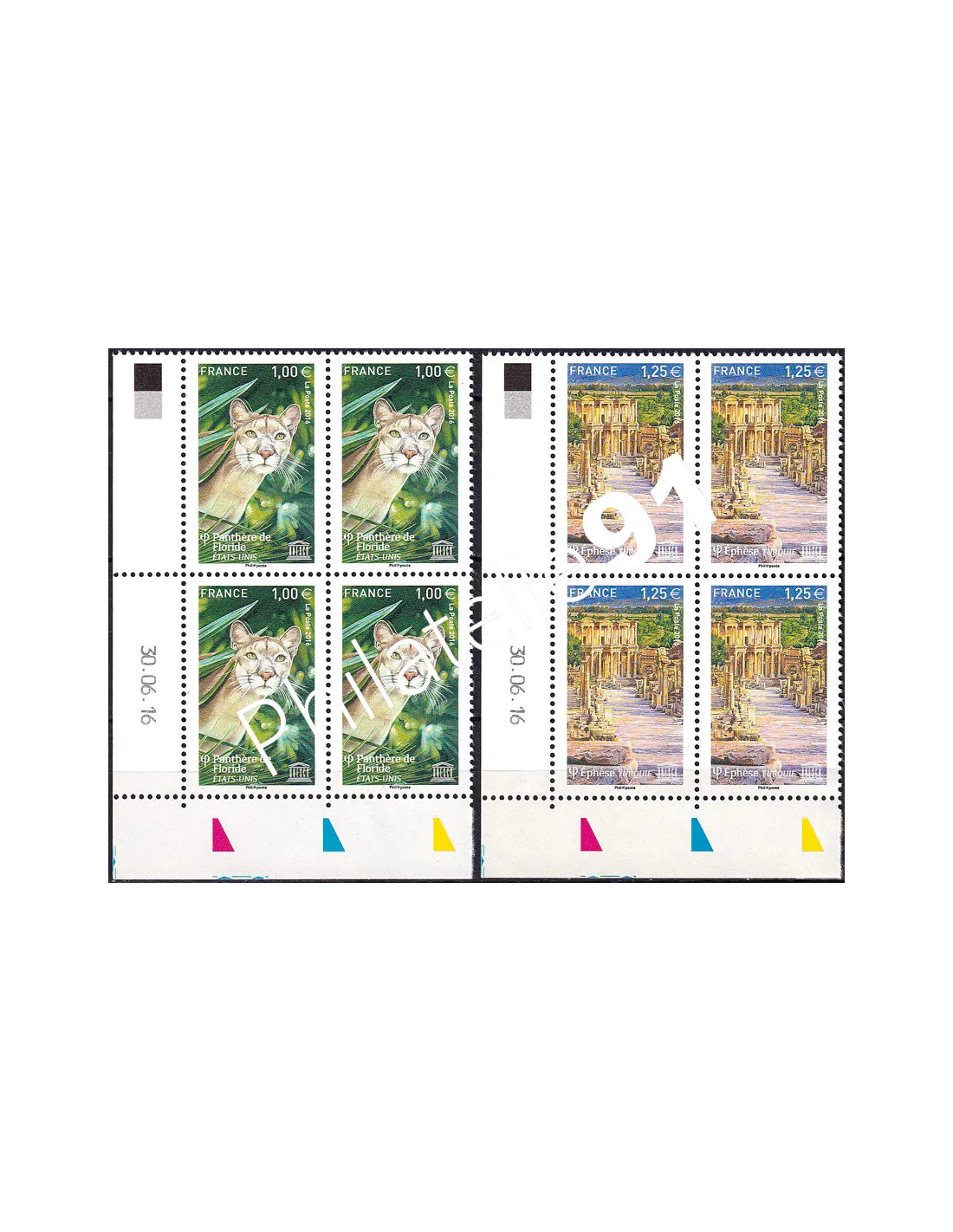 2 blocs de 4 timbres avec chacun un coin daté de 2016.