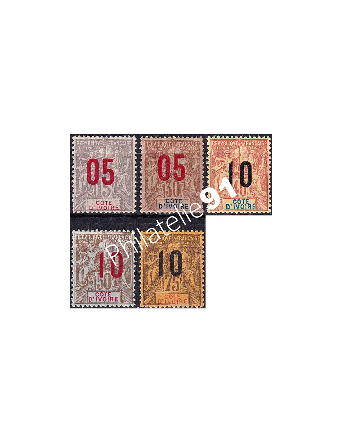 COTE D'IVOIRE - n° 36 à 40 * - Type Groupe - Timbres surchargés