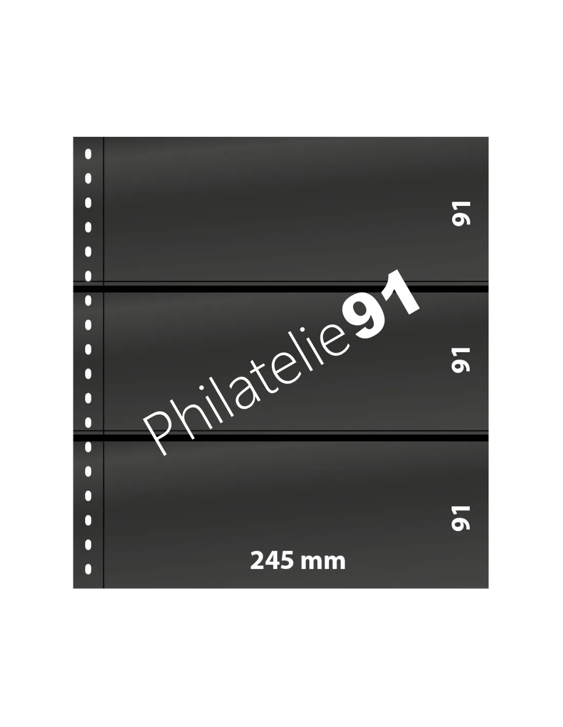 LINDNER - Feuilles de classement OMNIA - 3 bandes par page, noire (Paquet de 10) - Réf. 03P