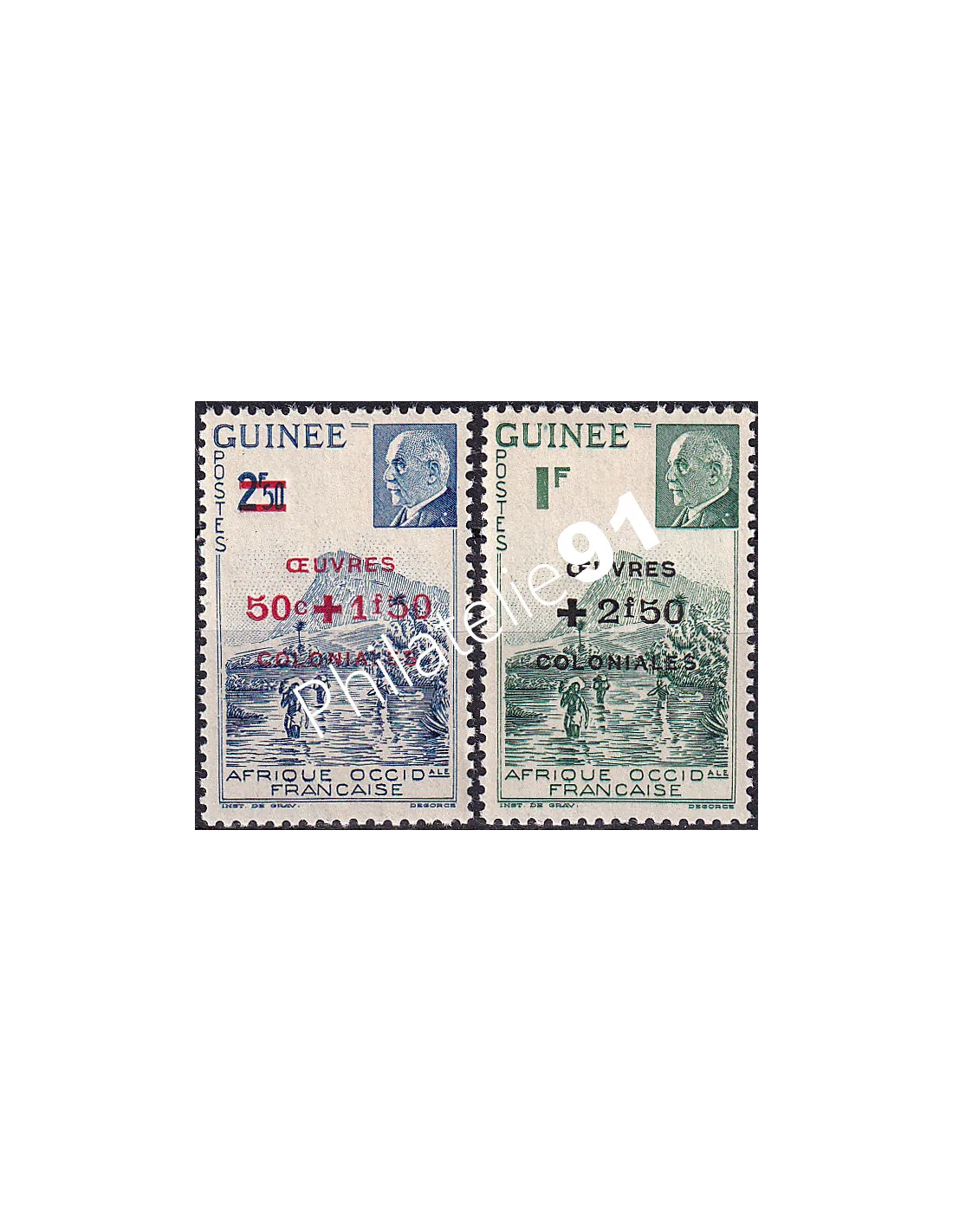 GUINEE - n° 185 à 186 * - Gué à Kitim - Effigie du Maréchal Pétain - Surcharges "Oeuvres coloniales"