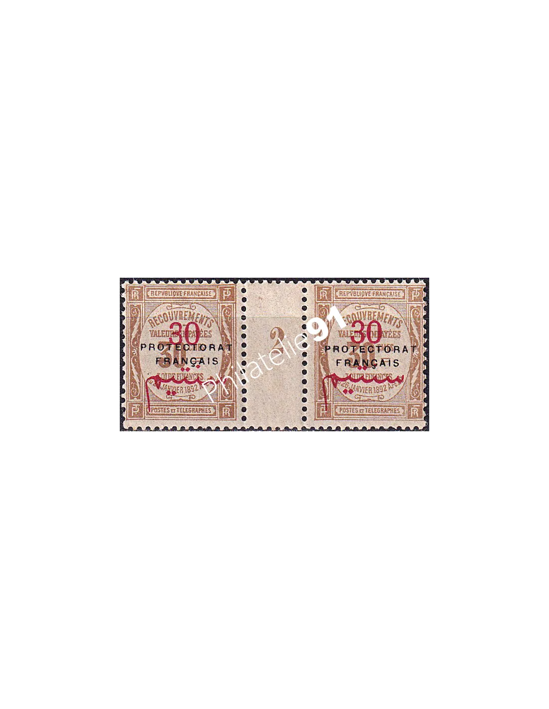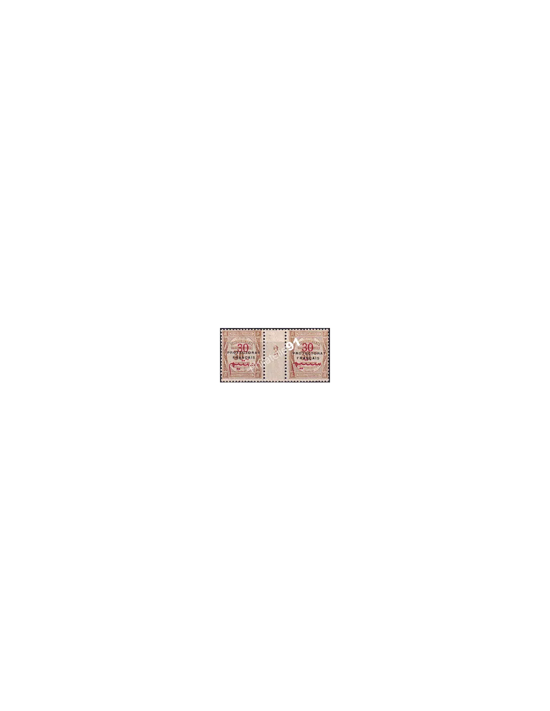 MAROC - Timbres-taxe - n° 25 ** (Paire avec millésime 2) - recouvrements surchargé "PROTECTORAT FRANÇAIS" (251030-5)