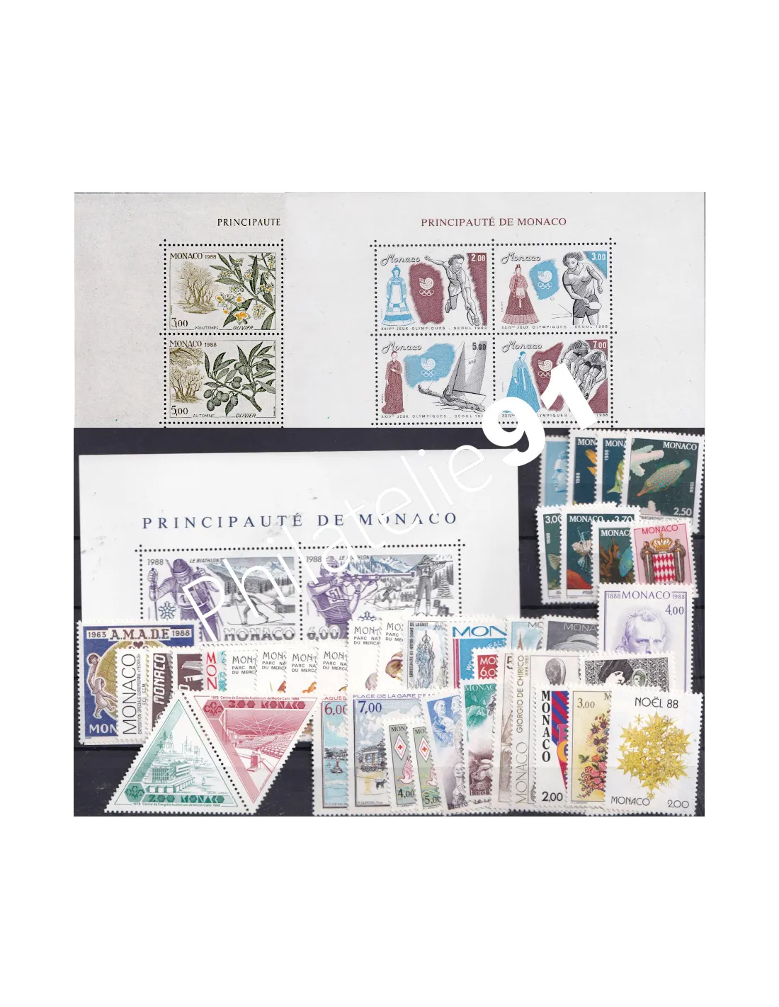 Année complète de Monaco 1988 du n° 1614 au n° 1662 dont BF n°40, 42 et 43.