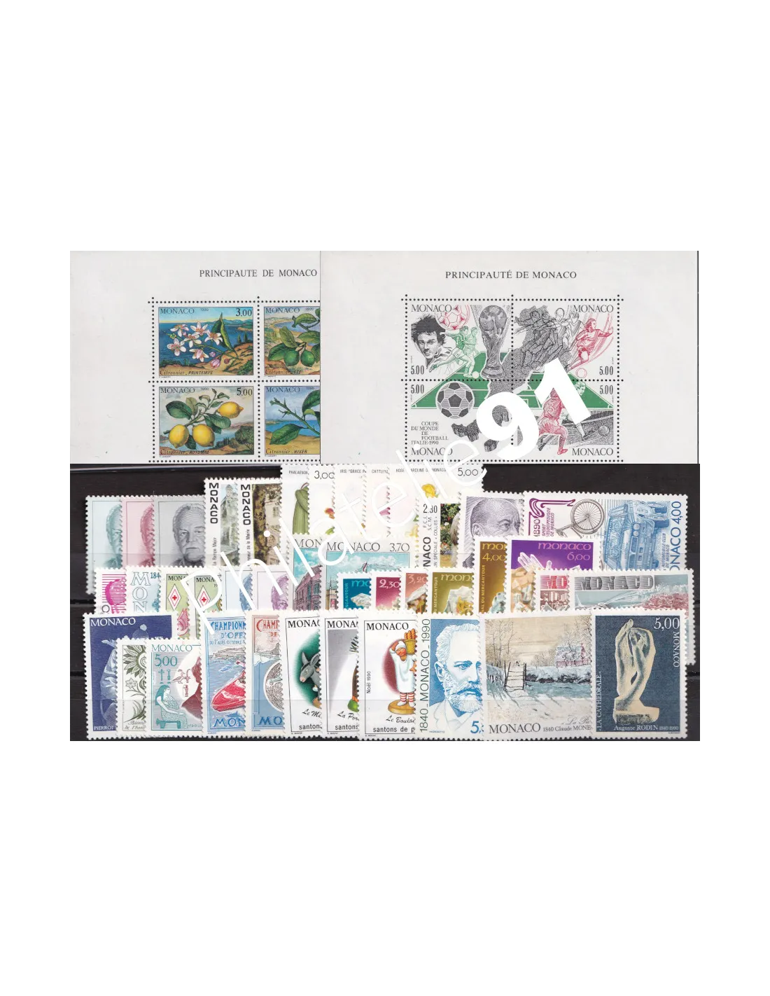 Année complète de Monaco 1990 du n° 1705 au n° 1752 dont BF n°50 et 51.