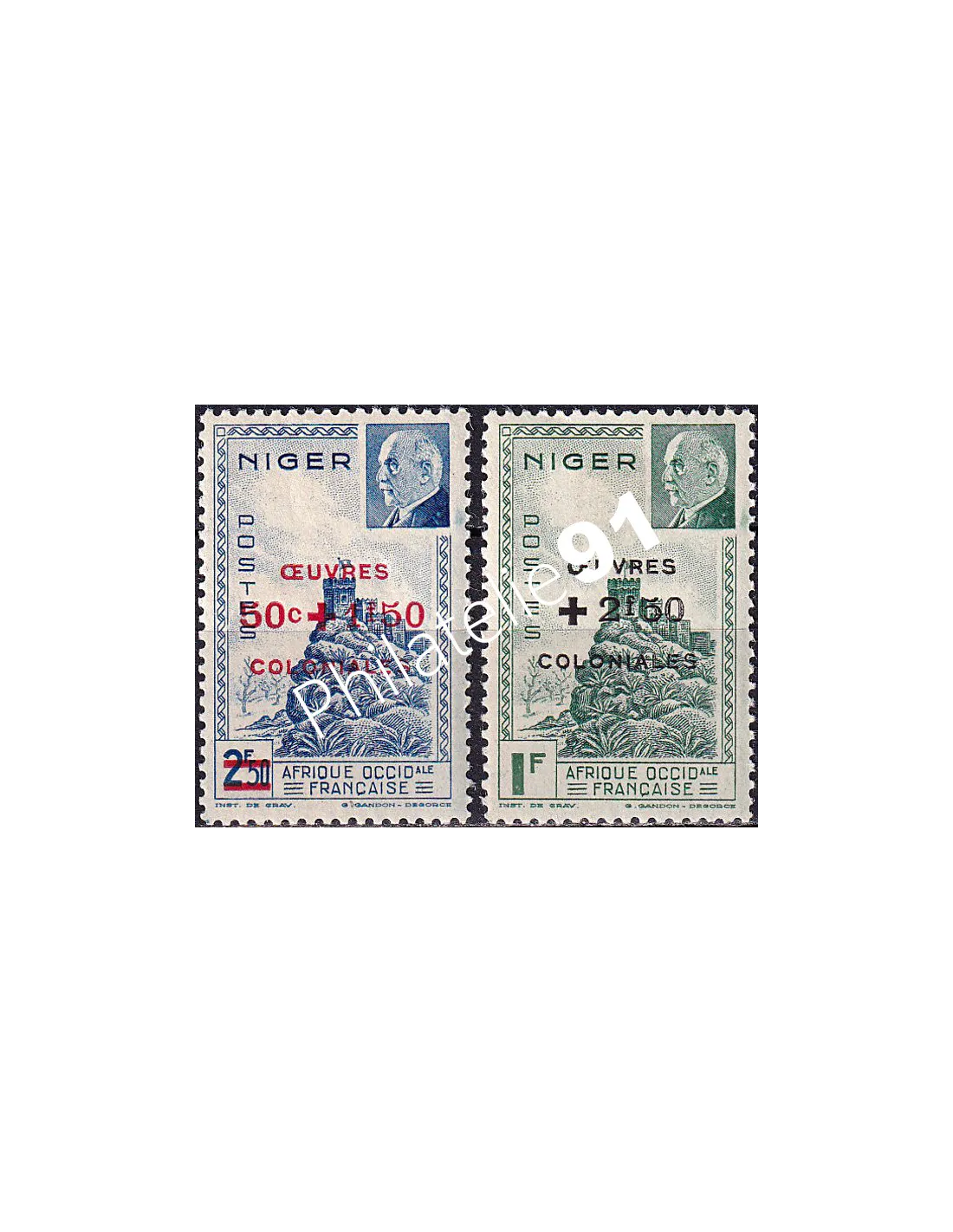 NIGER - n° 95 à 96 * - Forteresse de Zinder et effigie du Maréchal Pétain - Timbres surchargés "OEUVRES COLONIALES"
