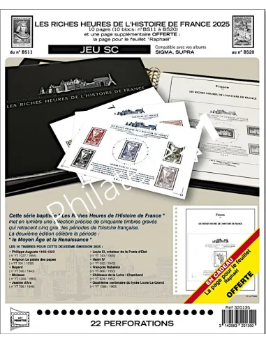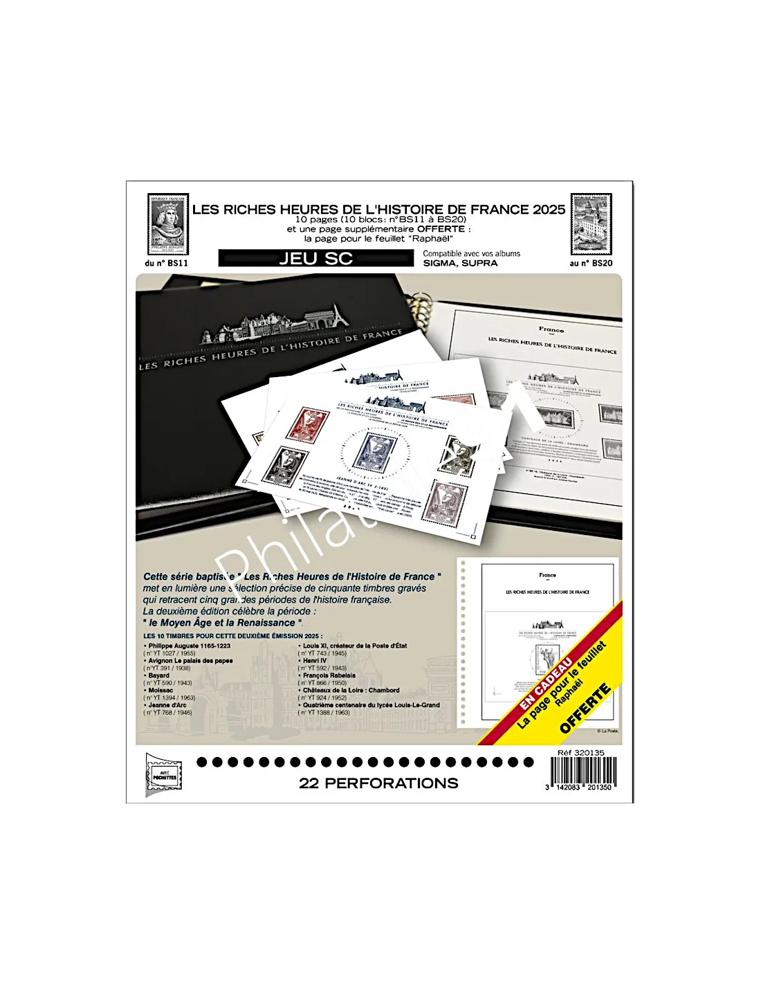 10 pages avec pochettes (10 blocs n° BS11 à BS20) + 1 page supplémentaire OFFERTE : la page pour le feuillet "Raphaël".