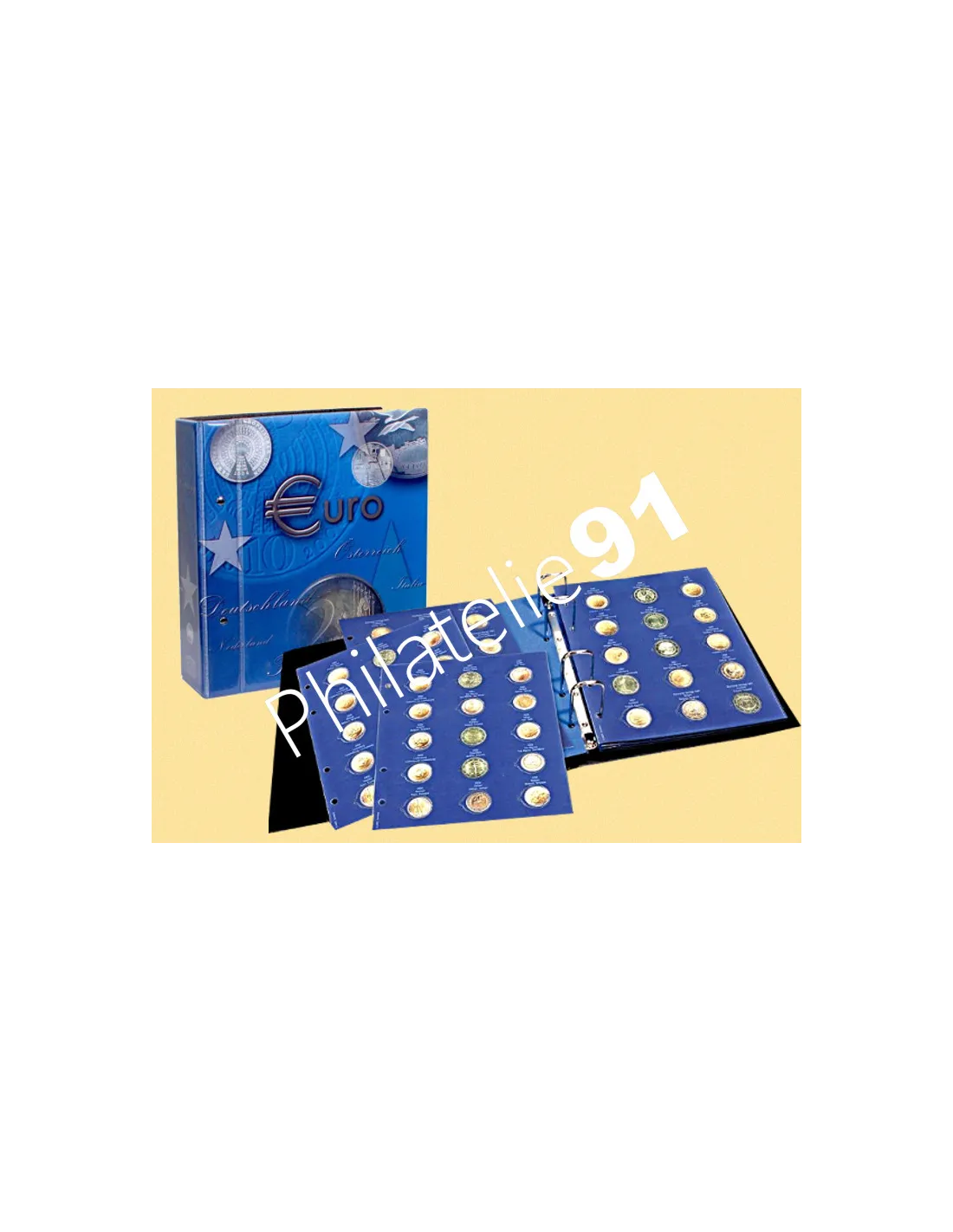 Chaque feuille est livrée avec un intercalaire pré-imprimé en couleurs avec les illustrations des pièces, le nom du pays et le millésime des pièces.