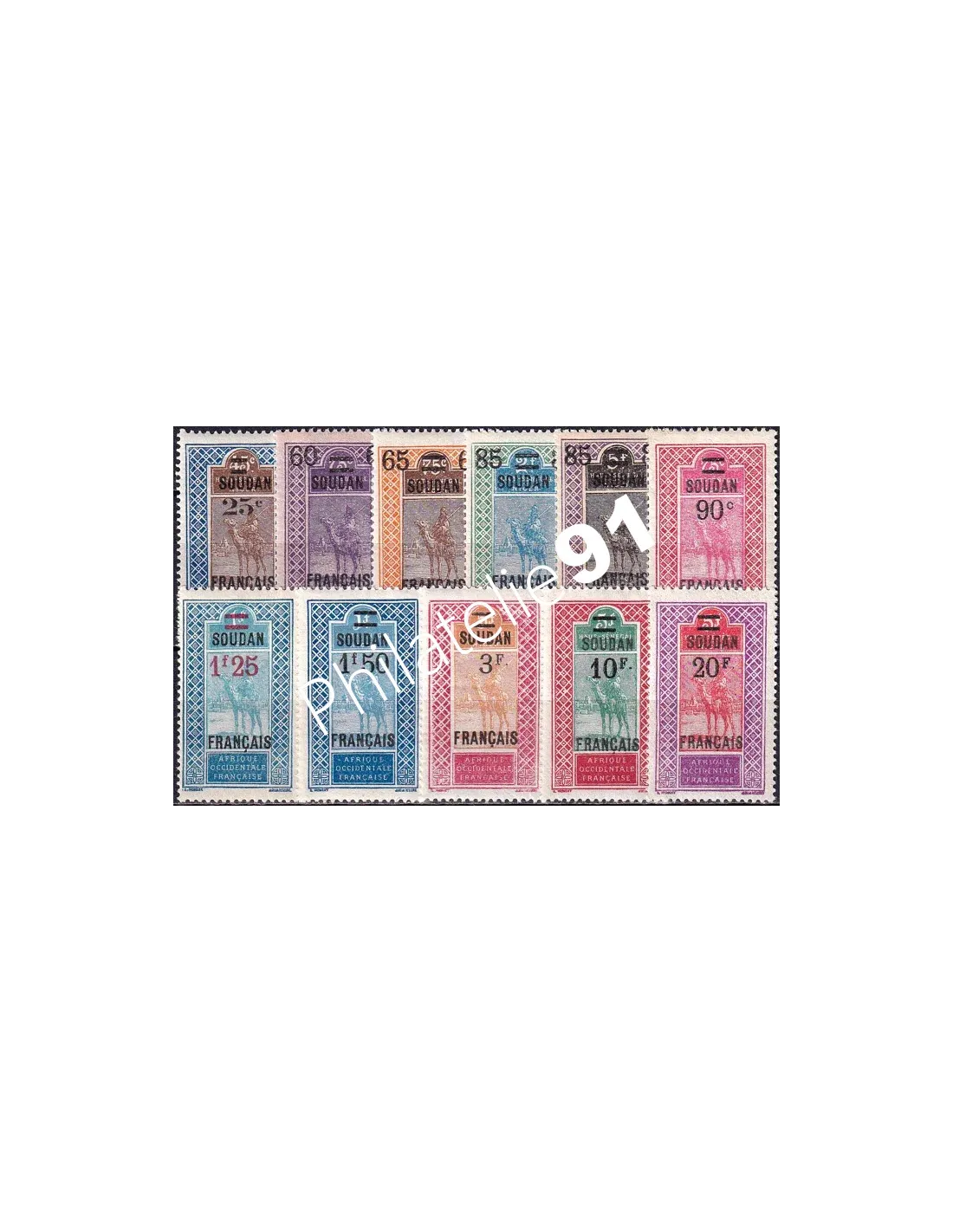 Types du Haut-Sénégal et Niger de 1914-1917 surchargés avec mention "SOUDAN FRANÇAIS", nouvelle valeur et traits barrant l'ancienne.