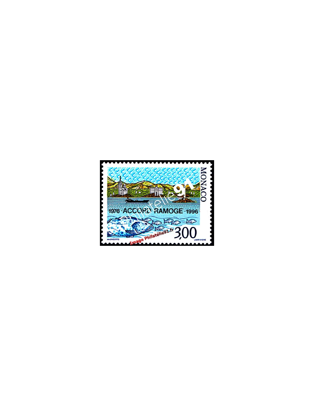 MONACO - n° 2038 - Accord Ramoge - Poissons, navire, phare, litt