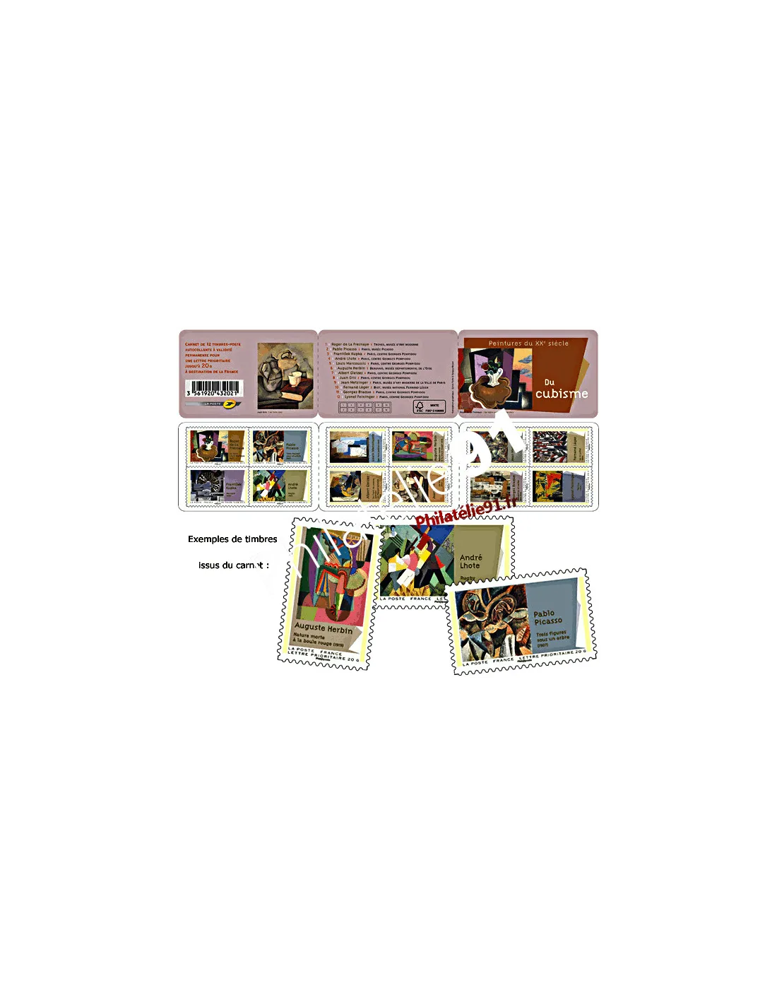 Carnet de 12 timbres autocollants consacrés à la peinture du début du XXe siècle,