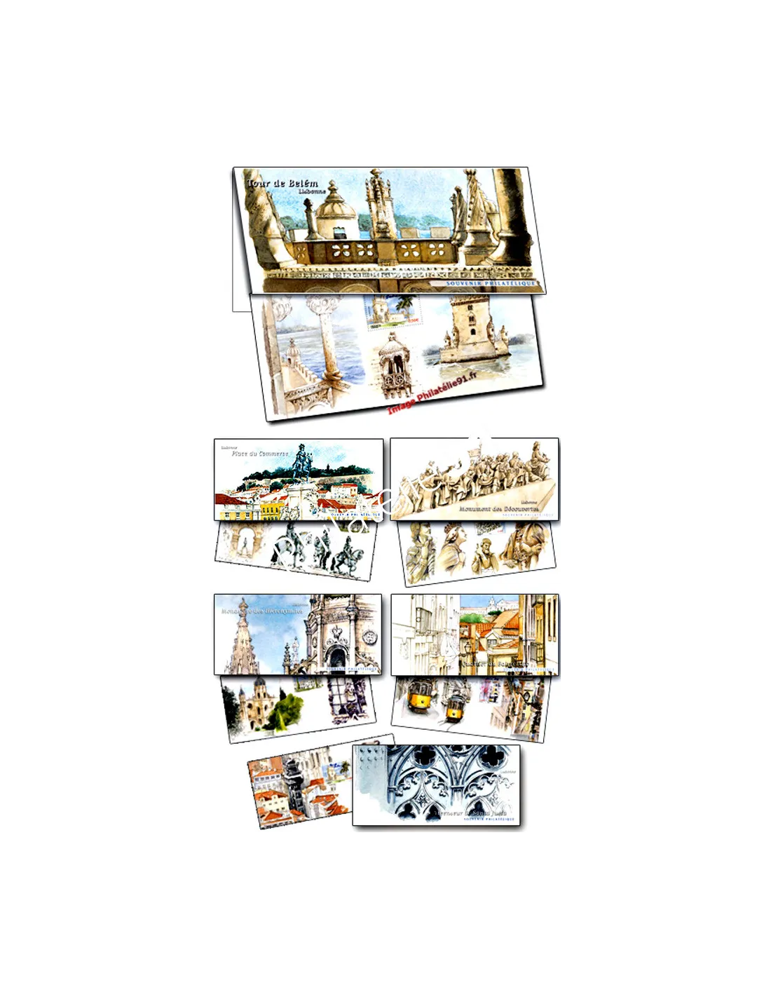 Chaque souvenir se compose d'une carte dans laquelle est inséré un feuillet contenant chacun un timbre issu du bloc "Capitales européennes : Lisbonne".