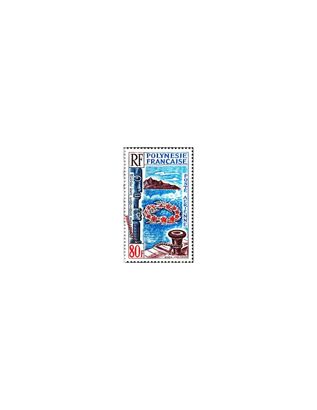 Timbre émis pour la poste aérienne de Polynésie française.