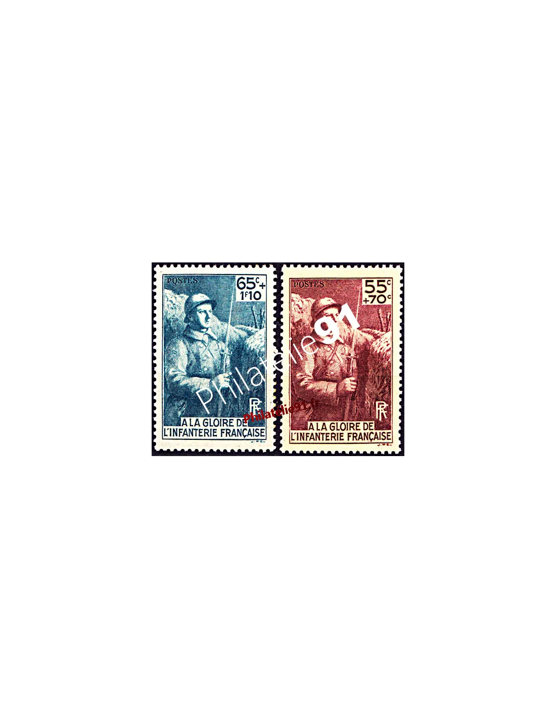 Timbre n° 386 à 387 ** - Surtaxe pour l'édification d'un monument à la gloire de l'infanterie