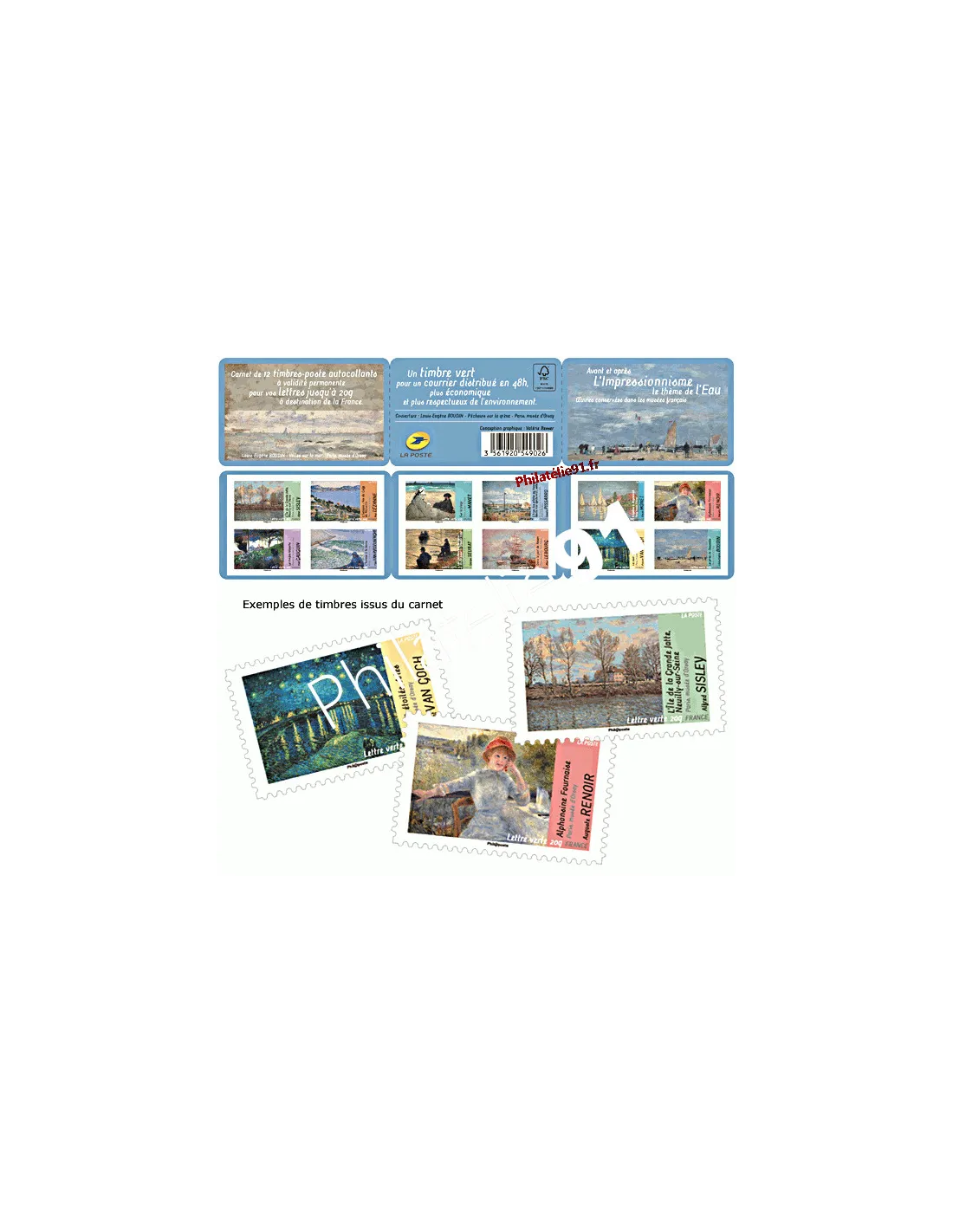 Présentation : carnet de 12 timbres autocollants avec mention « Lettre verte 20g »