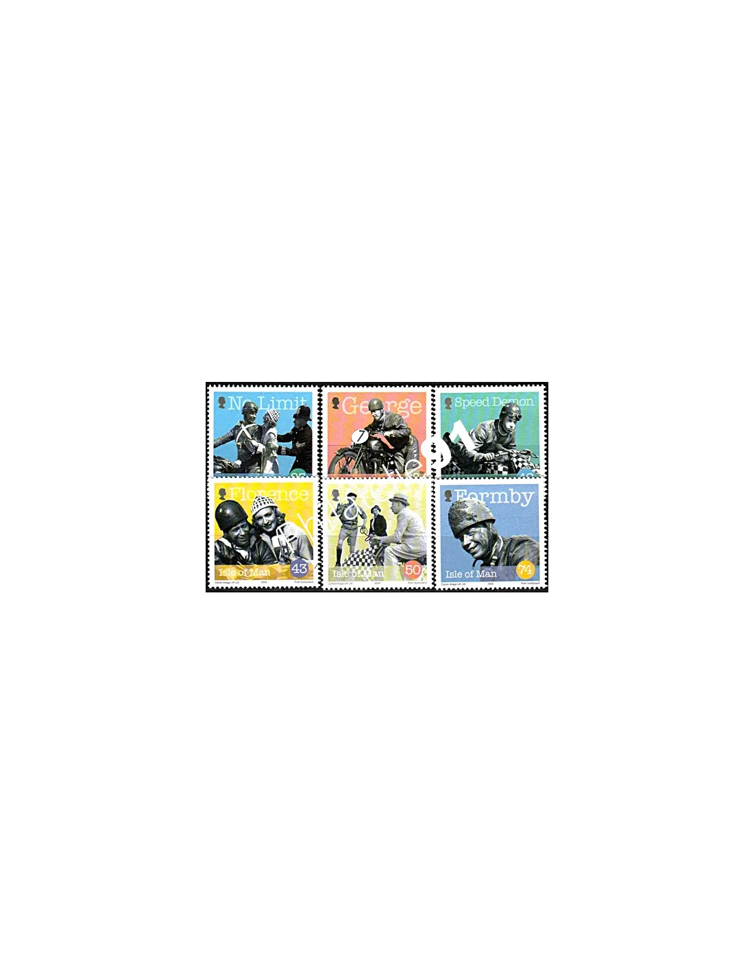 Série complète neuve**. 6 valeurs. Film "No Limit", 1935, de George Formby sur la course motocycliste "Tourist Trophy".