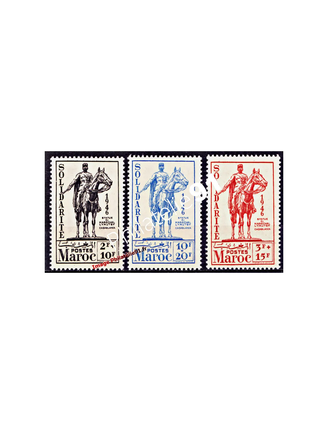MAROC - n° 241 à 243 * - Statue équestre de Lyautey à Casablanca