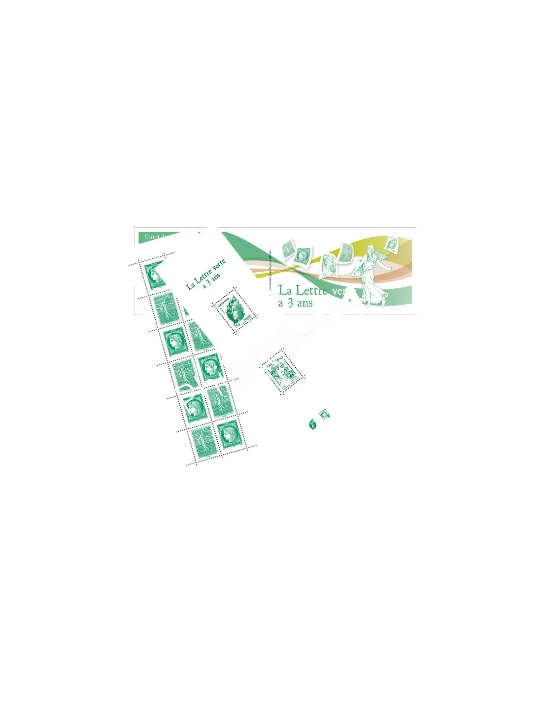 Ils reprennent le 1er timbre Marianne Lettre verte (Beaujard), l’actuel timbre Lettre verte (Ciappa & Kawena) ainsi que l’adaptation en taille-douce de la Cérès verte de 1850 (Barre) et de la Semeuse lignée verte de 1903 (Roty), qui tous placent ce carnet et ce bloc sous le symbole de l’agriculture, de la terre et de la sauvegarde de l’environnement.