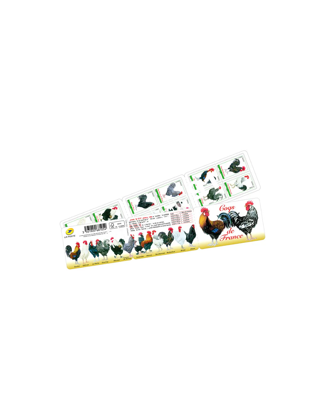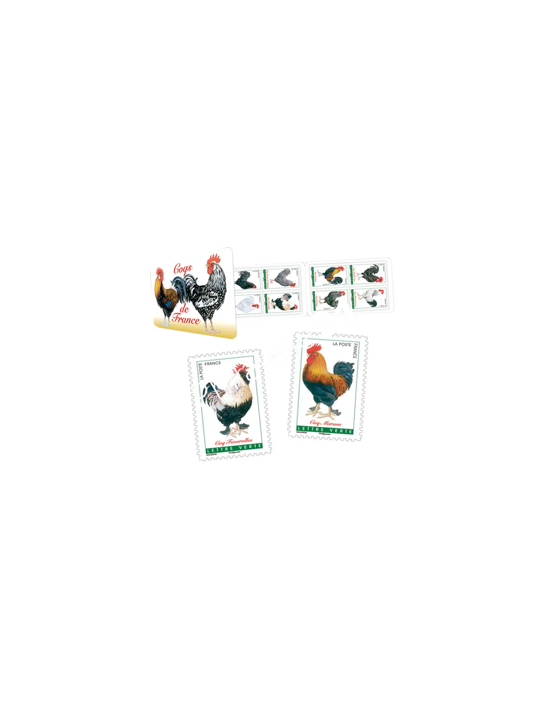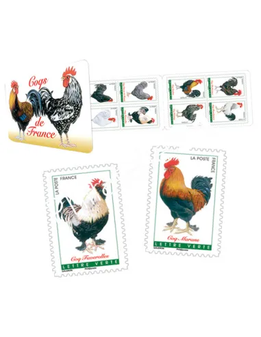 Carnet de 12 timbres autocollants "Coqs de France".