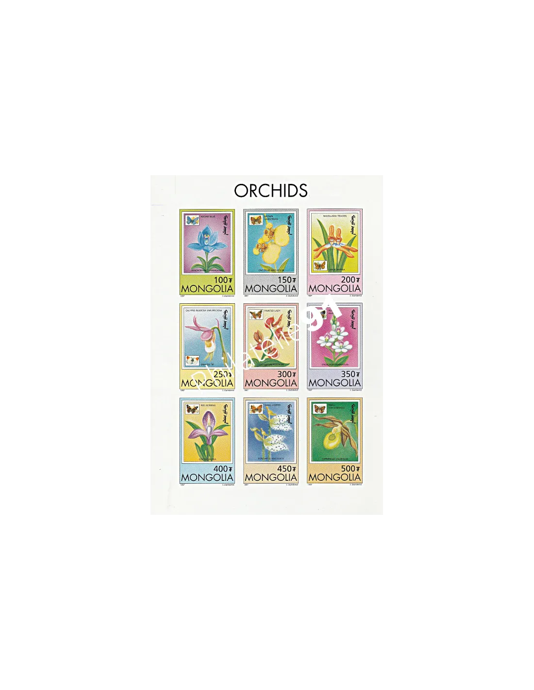 MONGOLIE - n° 2123 à 2131 ** ND (Feuille) - Orchidées et Papillons