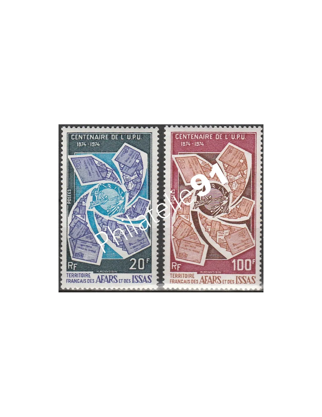 AFARS ET ISSAS - n° 388 à 389 ** - Centenaire de l'U.P.U.