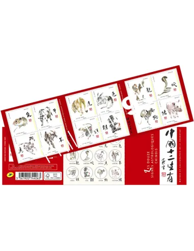 Carnet de 12 timbres adhésifs "Les douze signes astrologiques chinois"