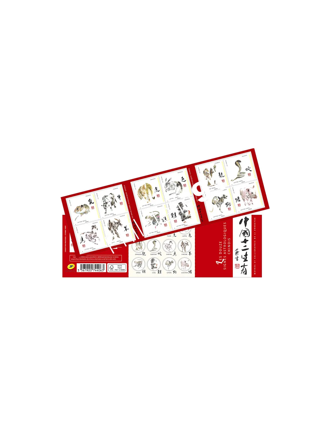 1 CARNET DE 12 TP Autocollants : Les douze signes astrologiques chinois