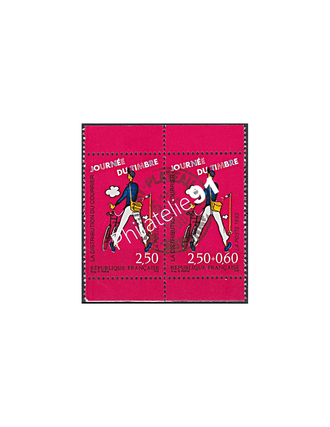 n° 2793A (Paire issue de Carnet) - Journée du Timbre 1993 - Métiers de la Poste - Distibution du courrier - Oblitéré
