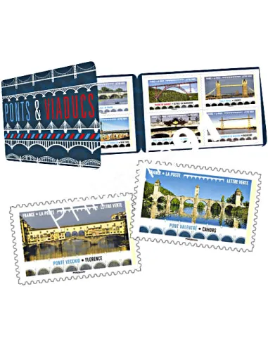 Les ponts, les viaducs et l’aqueduc qui illustrent les timbres de ce carnet ont été choisis pour montrer des architectures de différentes époques, de différents pays, réalisés dans différents matériaux, permettant le passage d'une rive à une autre de personnes à pied ou à vélo, de trains, de voitures, de tramways, de chargements de marchandises...