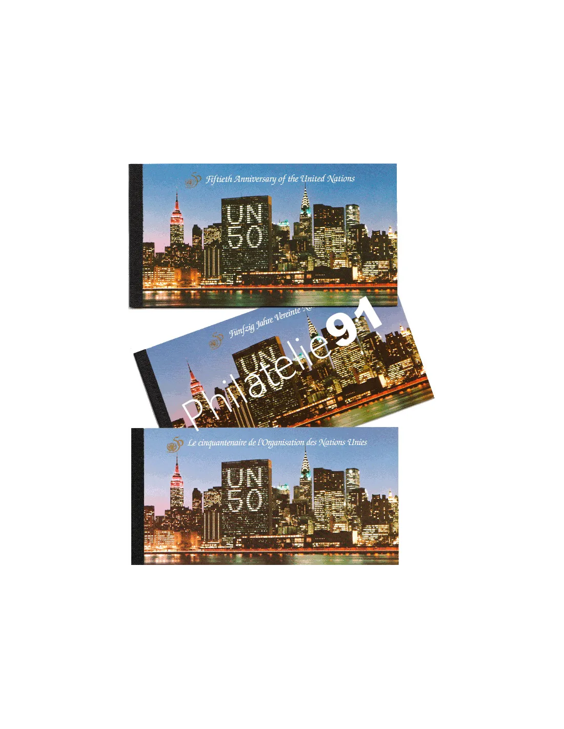 Cote = 41 €. 3 carnets de prestige neuves** O.N.U. émis par les 3 administrations postales de l'O.N.U. :