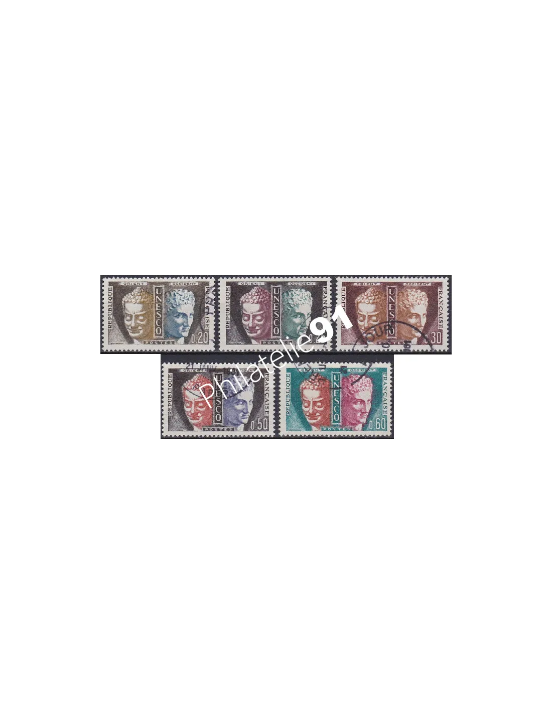 Timbre de Service n° 22 à 26 Oblitérés - U.N.E.S.C.O. - Bouddha et Hermés