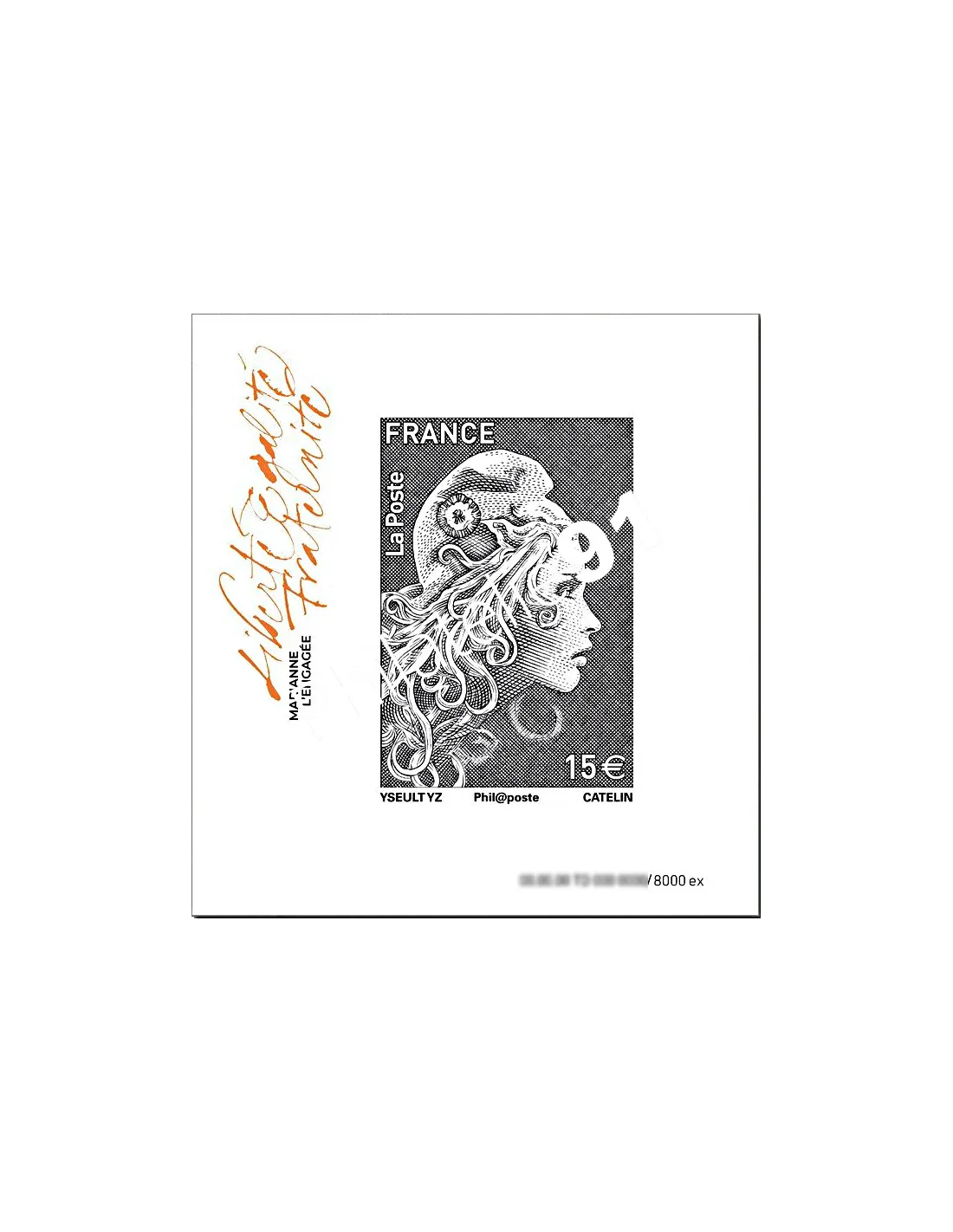 TIRAGE LIMITÉ. Bloc non dentelé Marianne l'engagée, 15€, effet pailleté noir.