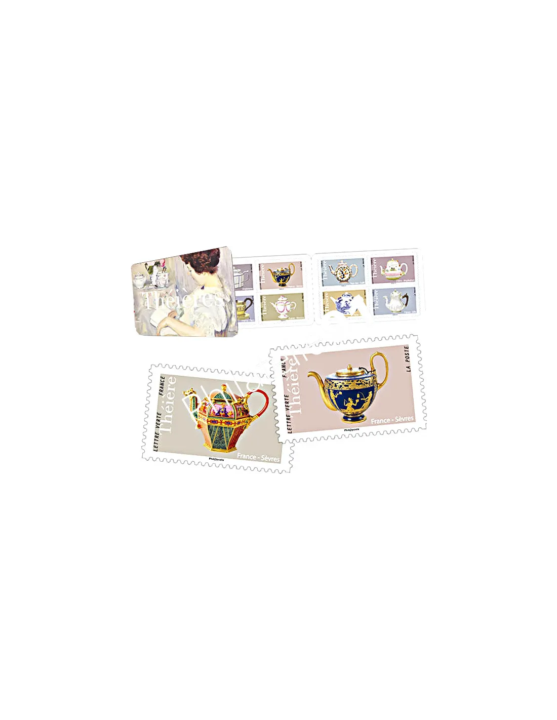 Douze théières produites dans différents pays illustrent chacune un timbre-poste.