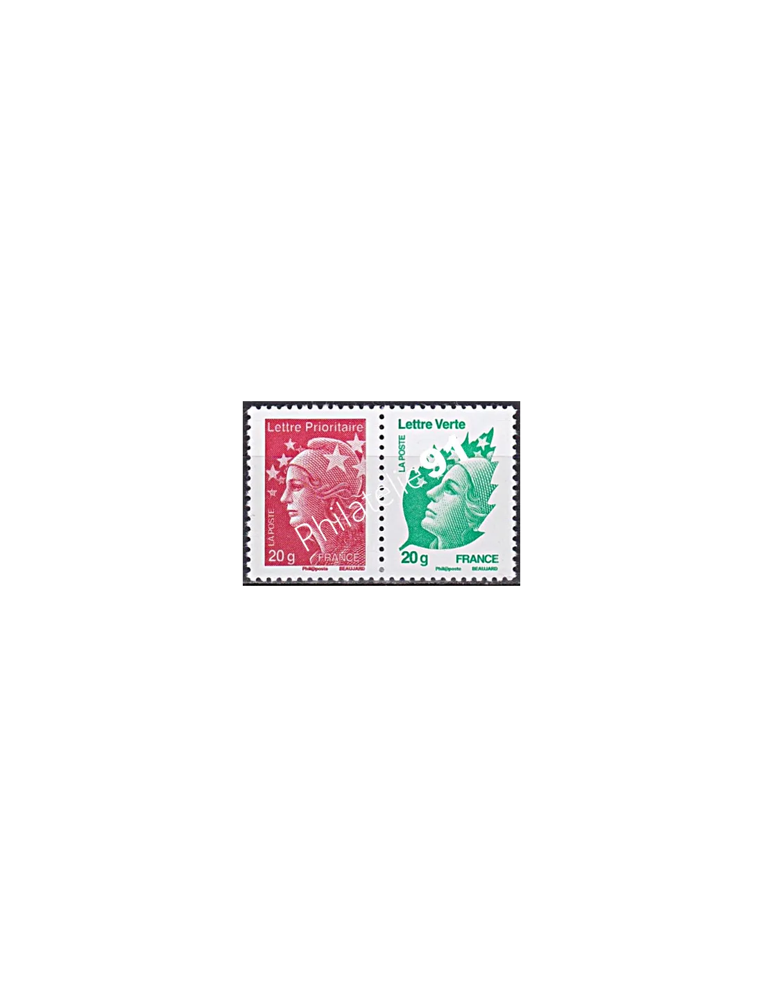 n° 4566a + 4593a ** - P4566 (Paire issue de Feuille) - Marianne et l'Europe + Lettre verte - Gamme courrier rapide