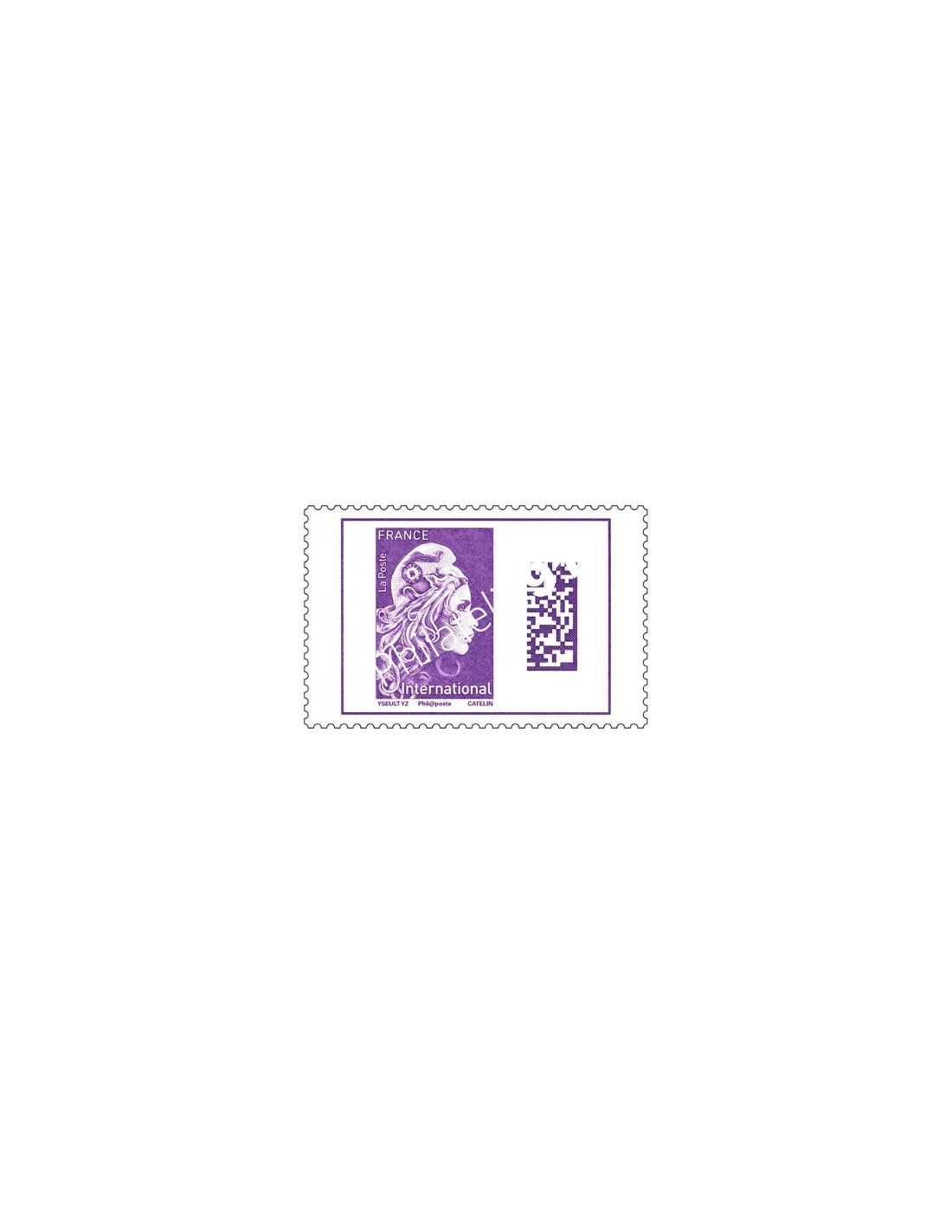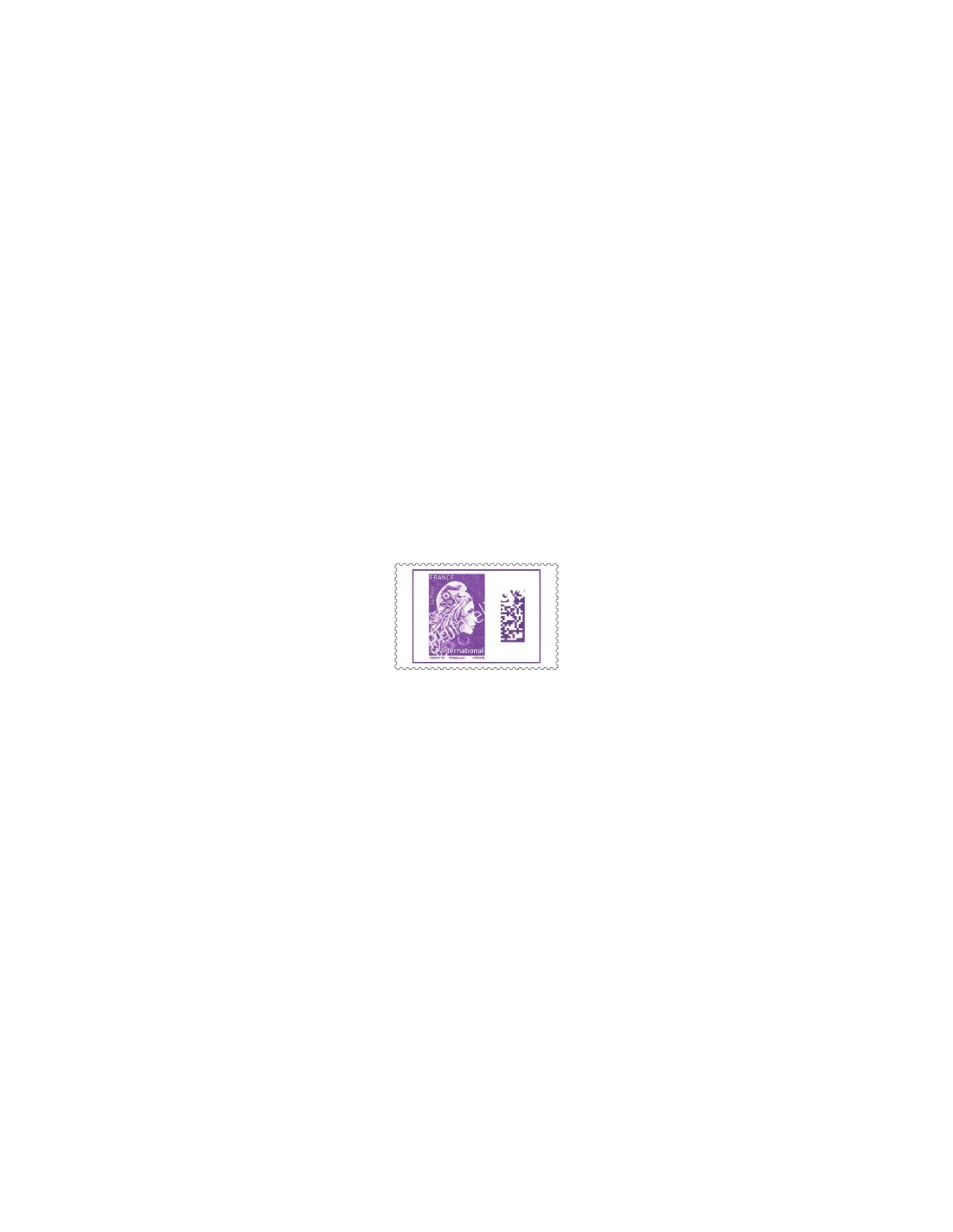 Timbre Marianne l'Engagée, violet, internationale. Mention Phil@poste