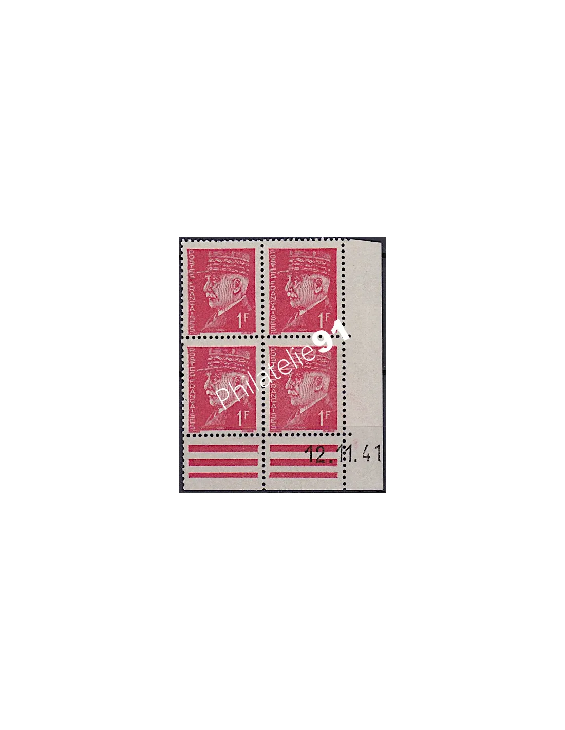 Bloc de 4 timbres avec coin daté de 1941.