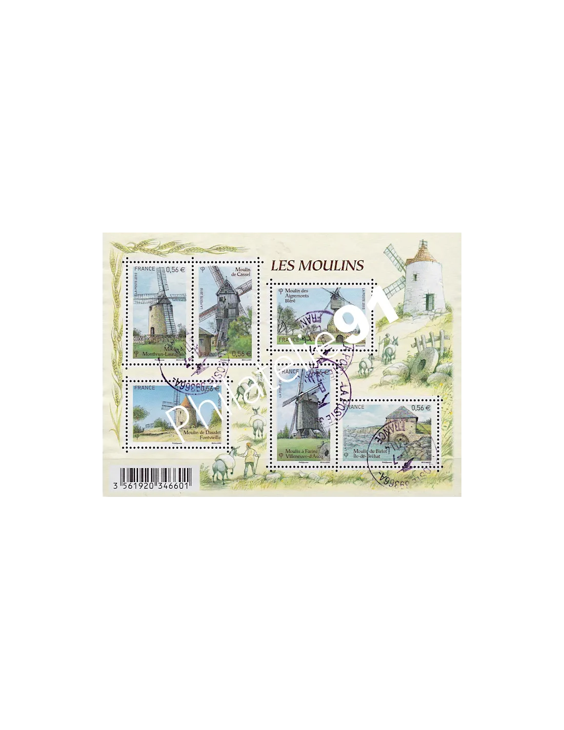 n° 4485 à 4490 Oblitéré (Feuille) - Les moulins