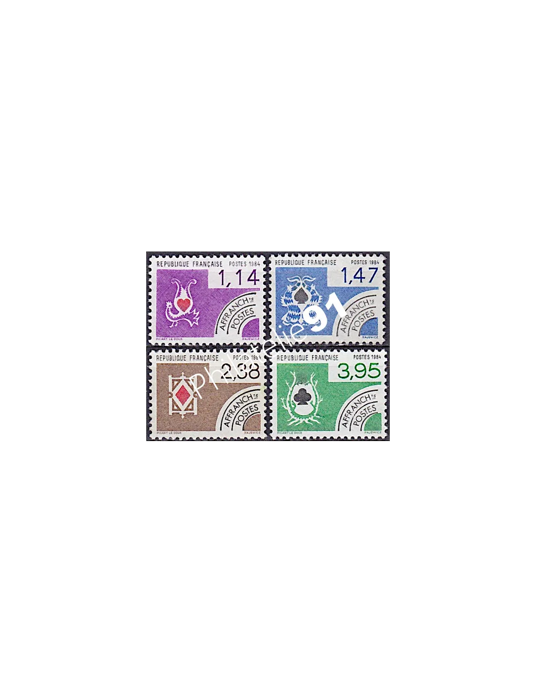 Timbre Préoblitéré n° 182 à 185 "Oblitéré" (Sans gomme) - Cartes à jouer