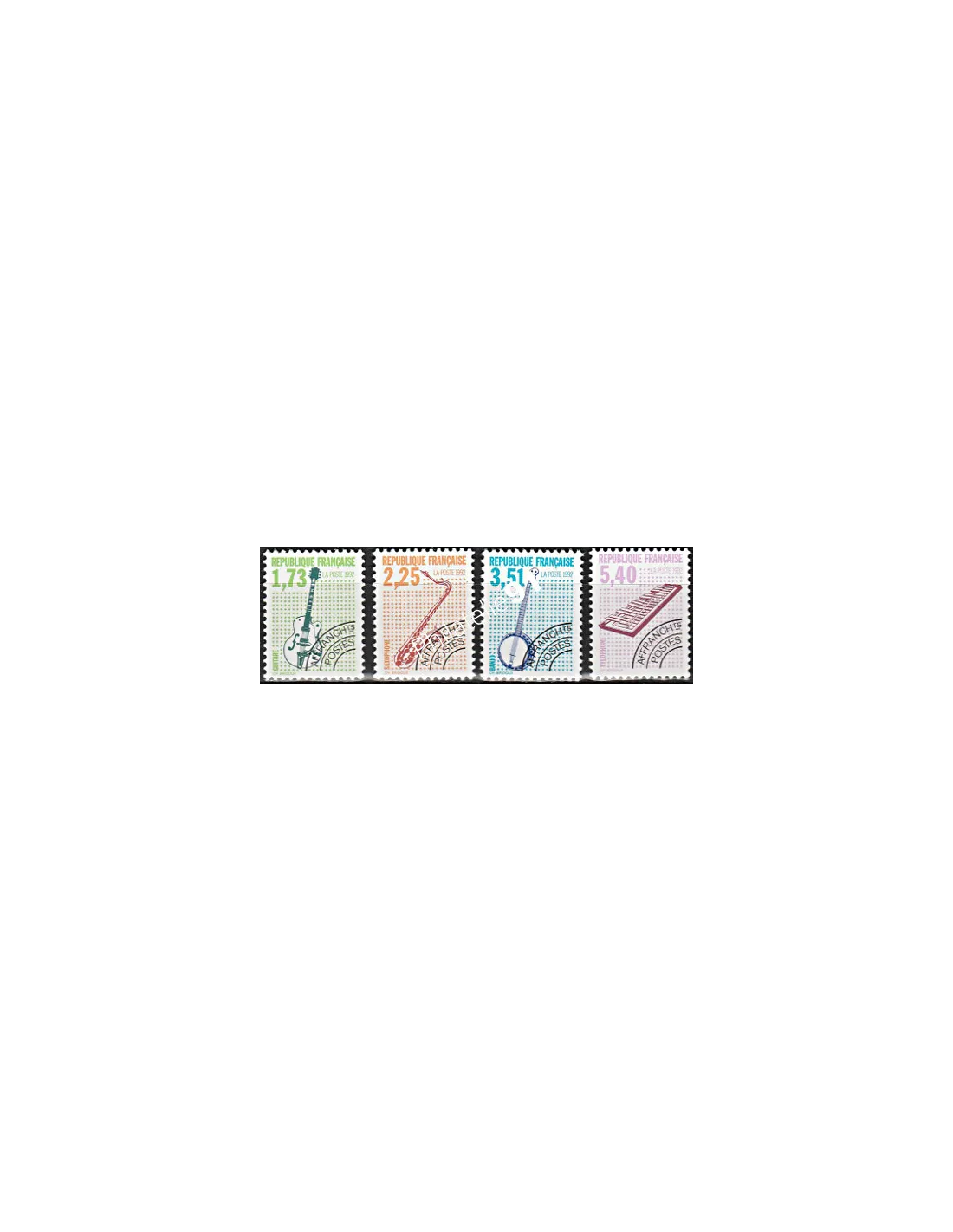 Timbre Préoblitéré n° 224 à 227 "Oblitéré" (Sans gomme) - Les instruments de musique (V)