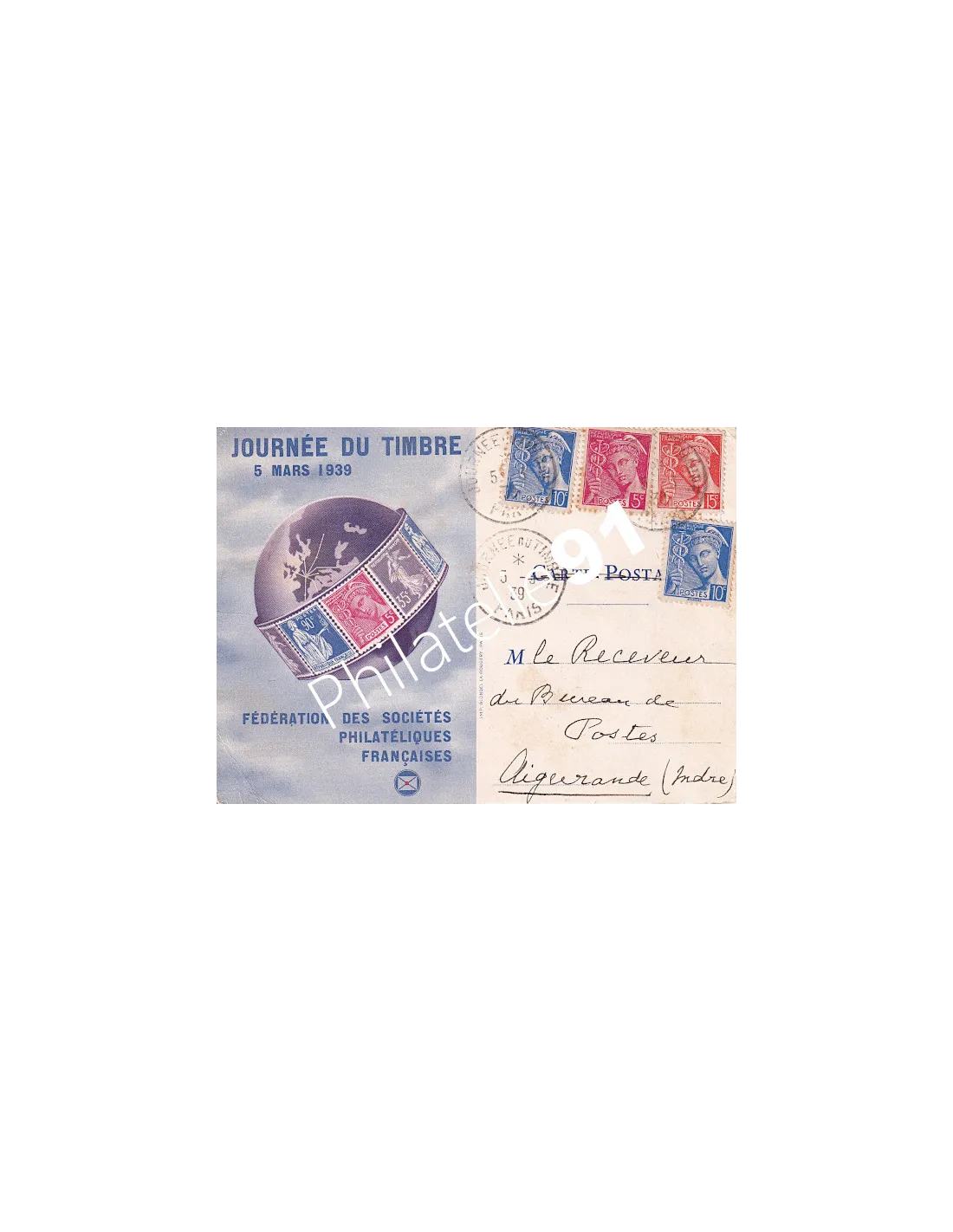 Carte postale commémorative de la Journée du timbre 1939.