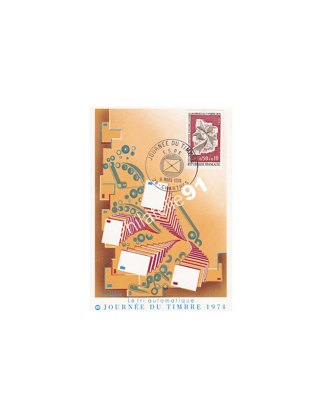 FRANCE - Carte postale oblitérée de la Journée du Timbre 1974 - Oblitération de Chartres (200708-11)