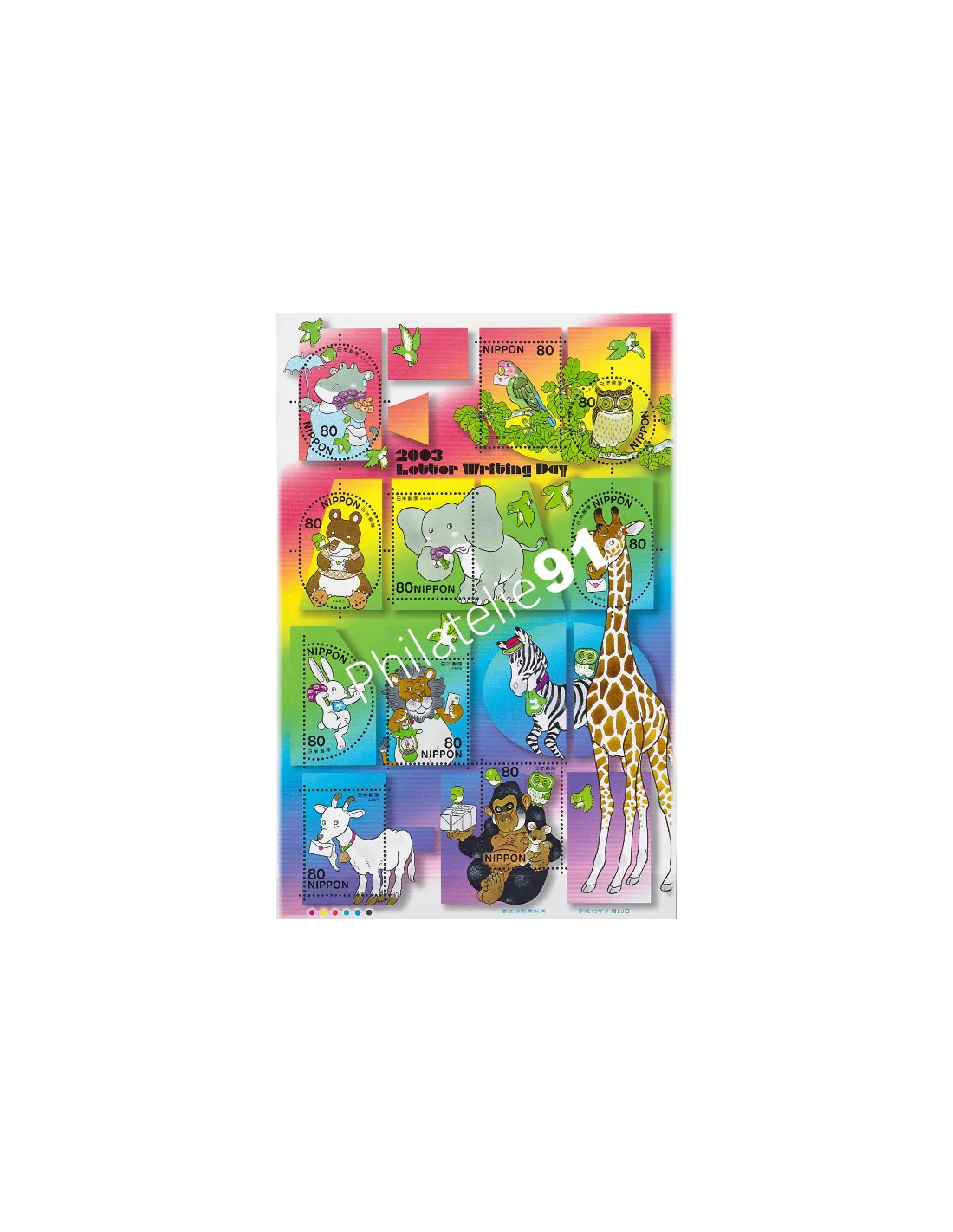 JAPON - n° 3423 ** (Feuille) - Journée de la lettre 2003 - Animaux illustrés