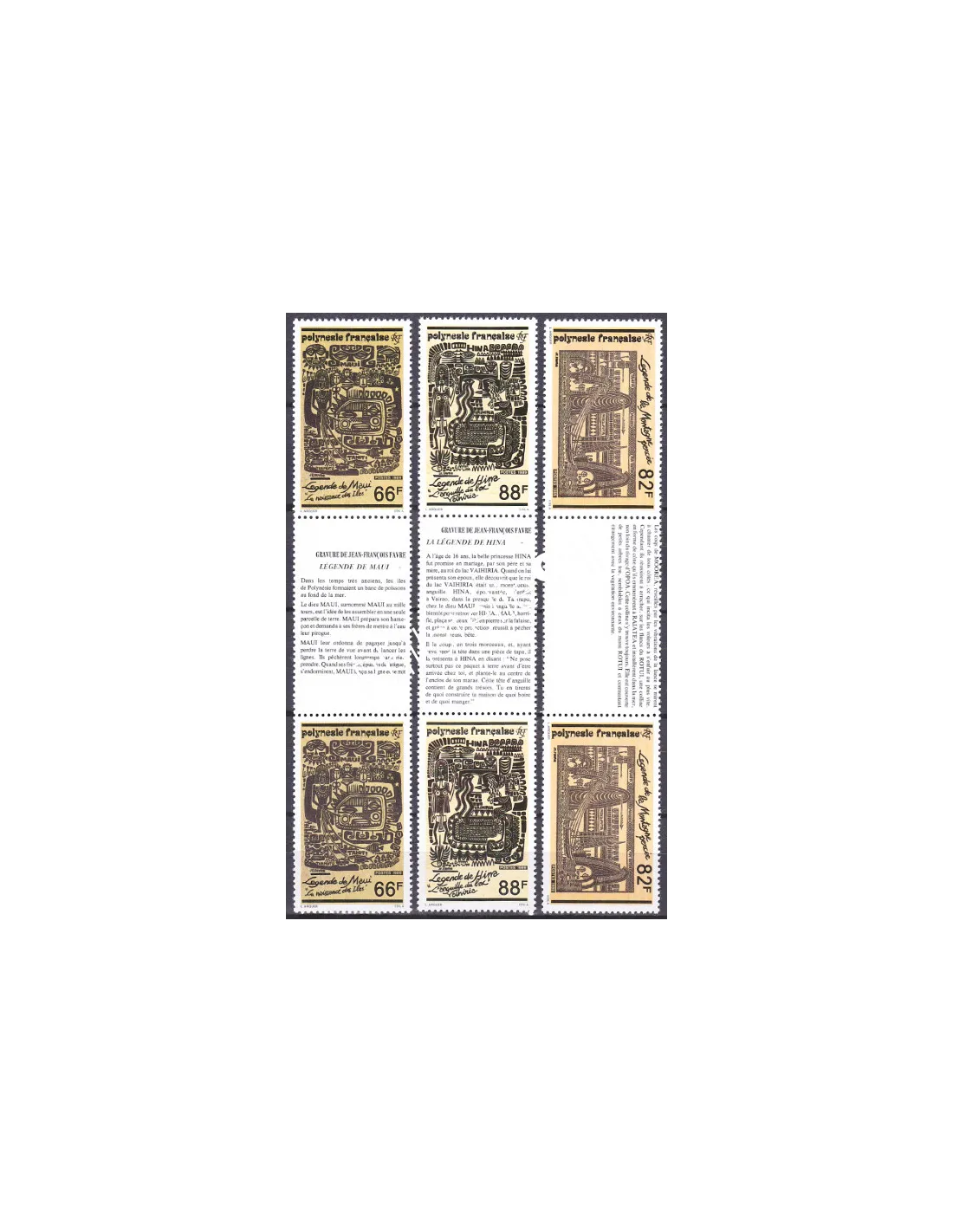 POLYNESIE - n° 347A à 349A ** (3 Paires avec vignette centrale) - Légendes polynésiennes